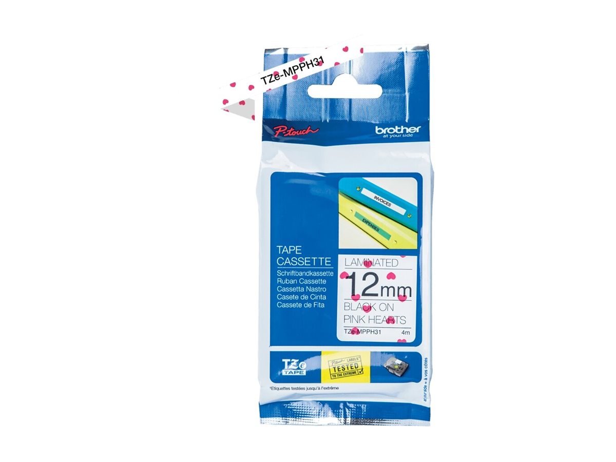 Brother TZe-MPPH31 - Noir sur cœurs roses - Rouleau (1,2 cm x 4 m) 1 cassette(s) ruban laminé - pour Brother PT-H110, P-Touch PT-E310, H110, P-Touch Cube PT-P300, P-Touch Embellish PT-D215Ce ruban laminé TZe-MPPH31 a été rigoureusement testé par l'équipe Brother pour être aussi durable et fiable que possible.
