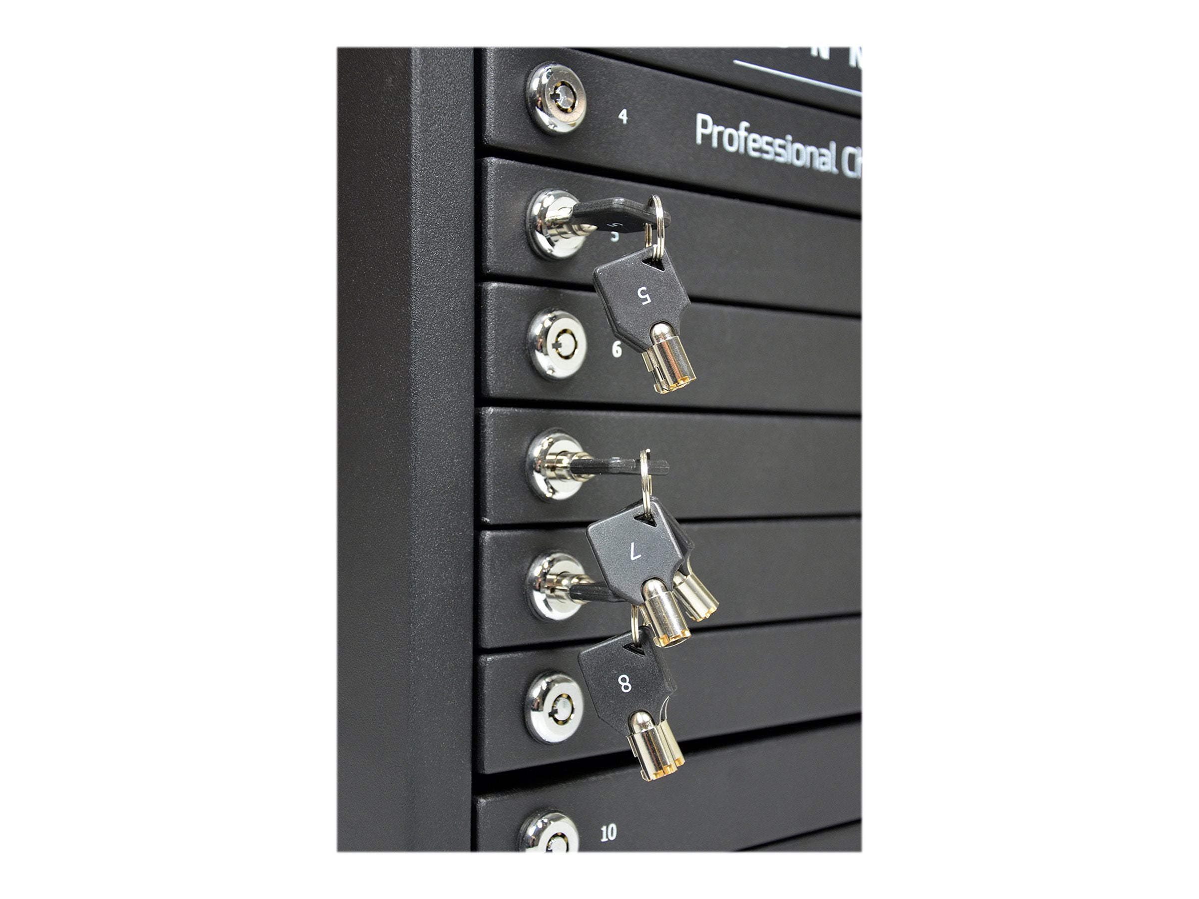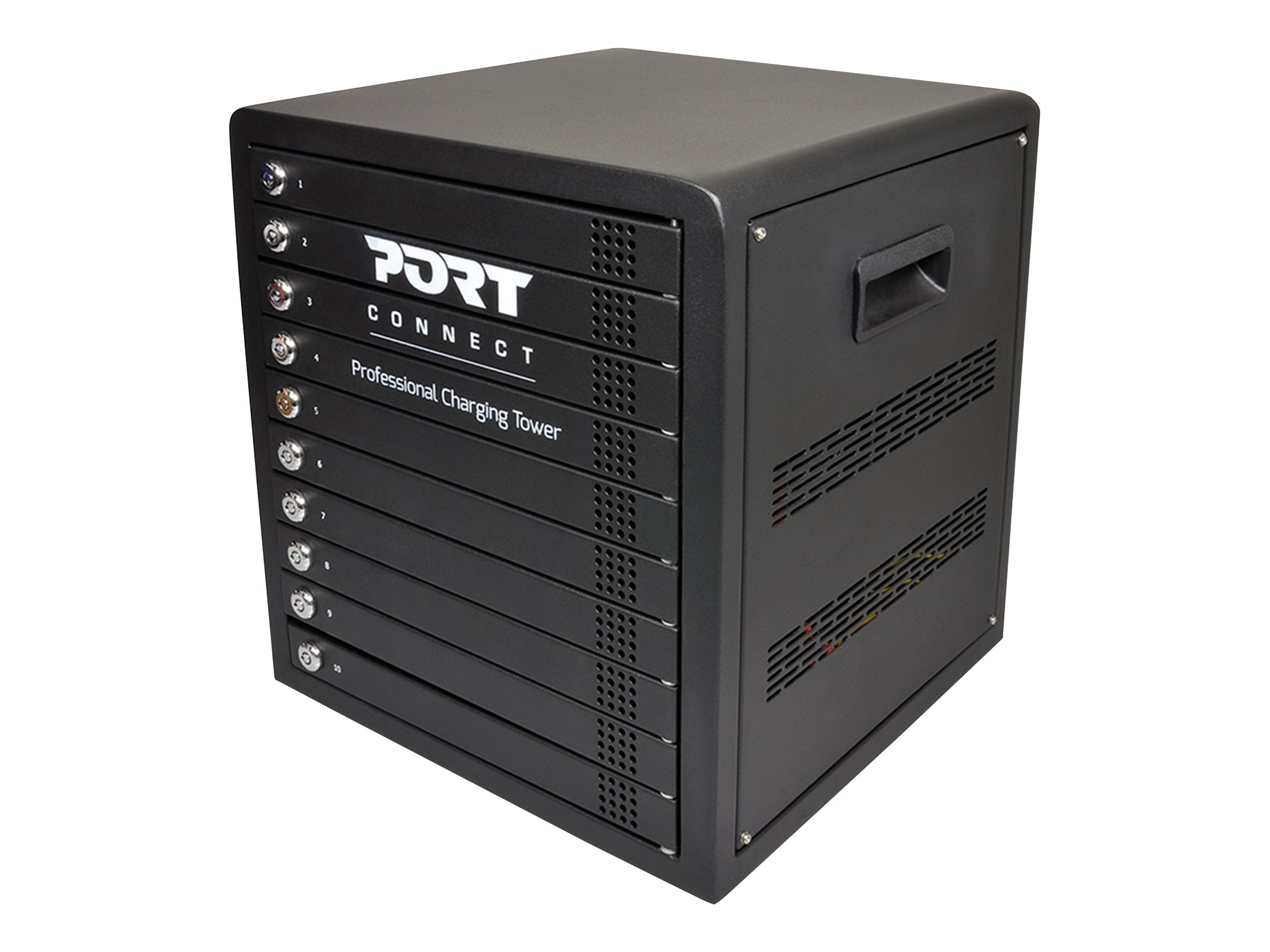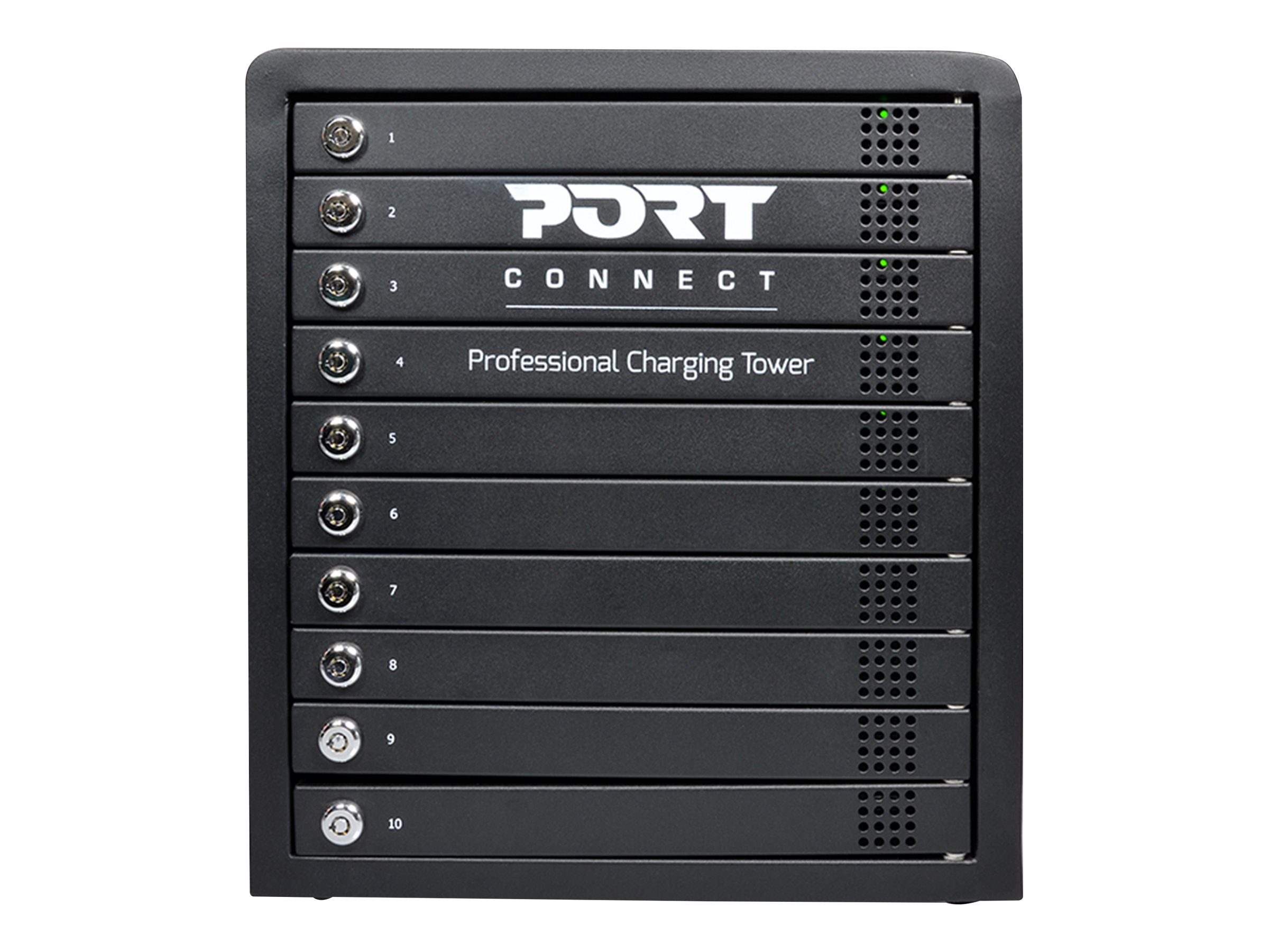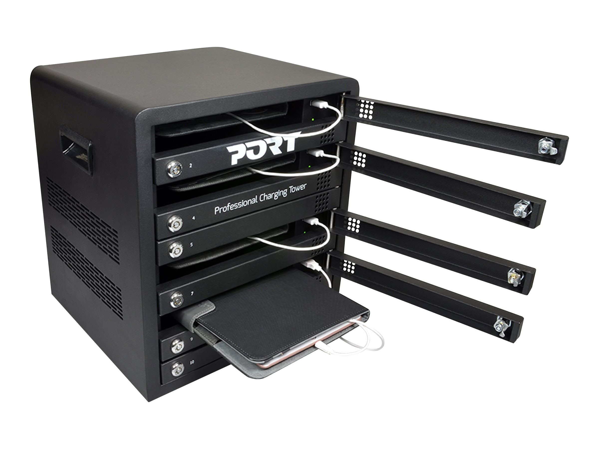 PORT Connect - Meuble de rangement (support uniquement) - pour 10 tablettes - verrouillable - noir - sortie : DC 5 VCabinet de charge avec portes individuelles 10 unités permet de recharger, stocker en toute sécurité et gérer les câbles d'alimentation jusqu'à 10 tablettes, téléphones mobiles et autres périphériques USB.
