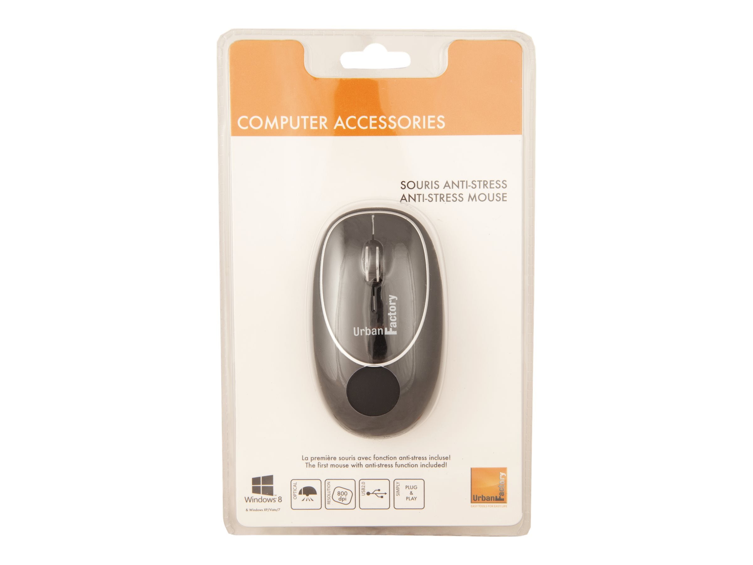 Urban Factory Mouse Memory Foam Black USB 2.0,Optical,800 dpi - Souris - optique - 2 boutons - filaire - USB - noirDétendez-vous, et choisissez une souris anti-stress pour vos clics quotidiens au bureau! La souris s'adapte naturellement à la forme de la main, assurant ainsi à l'utilisateur un confort absolu!