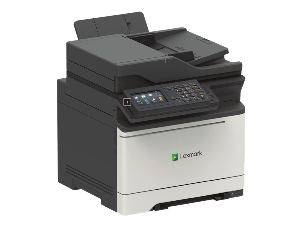 Lexmark CX622ade - Imprimante multifonctions - couleur - laser - 215.9 x 355.6 mm (original) - A4/Legal (support) - jusqu'à 38 ppm (copie) - jusqu'à 37 ppm (impression) - 250 feuilles - 33.6 Kbits/s - USB 2.0, Gigabit LAN, hôte USB 2.0Le multifonction Lexmark CX622ade permet des impressions couleur de grande qualité jusqu'à 40 [38] ppm et des numérisations recto verso simple passe jusqu'à 100 [94] images par minute. Outre sa gestion fiable des supports de différents types et formats, il propose des outils qui vous aident à réduire la consommation de toner et à améliorer la précision des couleurs, et est doté d'un écran tactile couleur de 4,3 pouces [10,9 cm]. Avec une capacité d'alimentation pouvant atteindre 1 451 pages, un système de traitement d'images longue durée, ainsi que des cartouches de toner de remplacement pouvant atteindre 10 500 pages monochromes et 7 000 pages couleur, vous réduirez les interruptions de service liés au chargement du papier et à d'autres services.