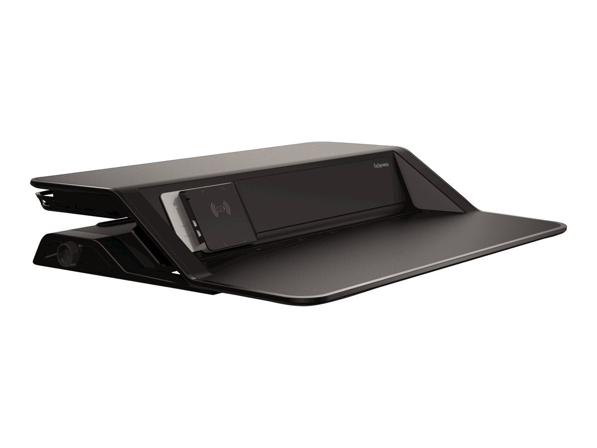 Fellowes Lotus DX - Adaptateur en bureau debout - rectangulaire - noir - noirLe Lotus DX fait passer votre poste de travail au niveau supérieur grâce au chargement sans fil et à la connectivité USB intégrés, ce qui vous permet de rester productif sans effort. Les ports USB et le chargement sans fil pour les appareils compatibles Qi- fonctionnent avec le canal intégré pour faciliter le chargement de vos appareils et les garder à portée de main. La protection Microban permet de garder votre poste de travail plus propre. La technologie Smooth Lift en instance de brevet maintient votre poste de travail stable et permet de changer de position sans effort. La gestion innovante des cordons permet à l'ensemble de votre espace de travail de se déplacer librement avec vous. Il est livré entièrement assemblé - pas d'instructions compliquées, pas de montage, il suffit de déballer et de commencer.