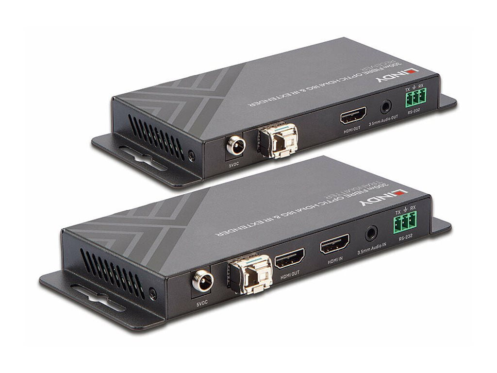 LINDY Fibre Optic HDMI 2.0 18G et IR Extender - Prolongateur audio/vidéo - HDMI - jusqu'à 300 mL'Extender Fibre Optique HDMI et IR 300m de LINDY est une solution hautes performances pour étendre les transmissions Ultra HD 4K 60Hz sur des distances incroyables à l'aide d'une seule fibre optique Duplex LC multimode (50/125 µm), ce qui n'est pas possible avec les systèmes traditionnels à base de liaison cuivre.