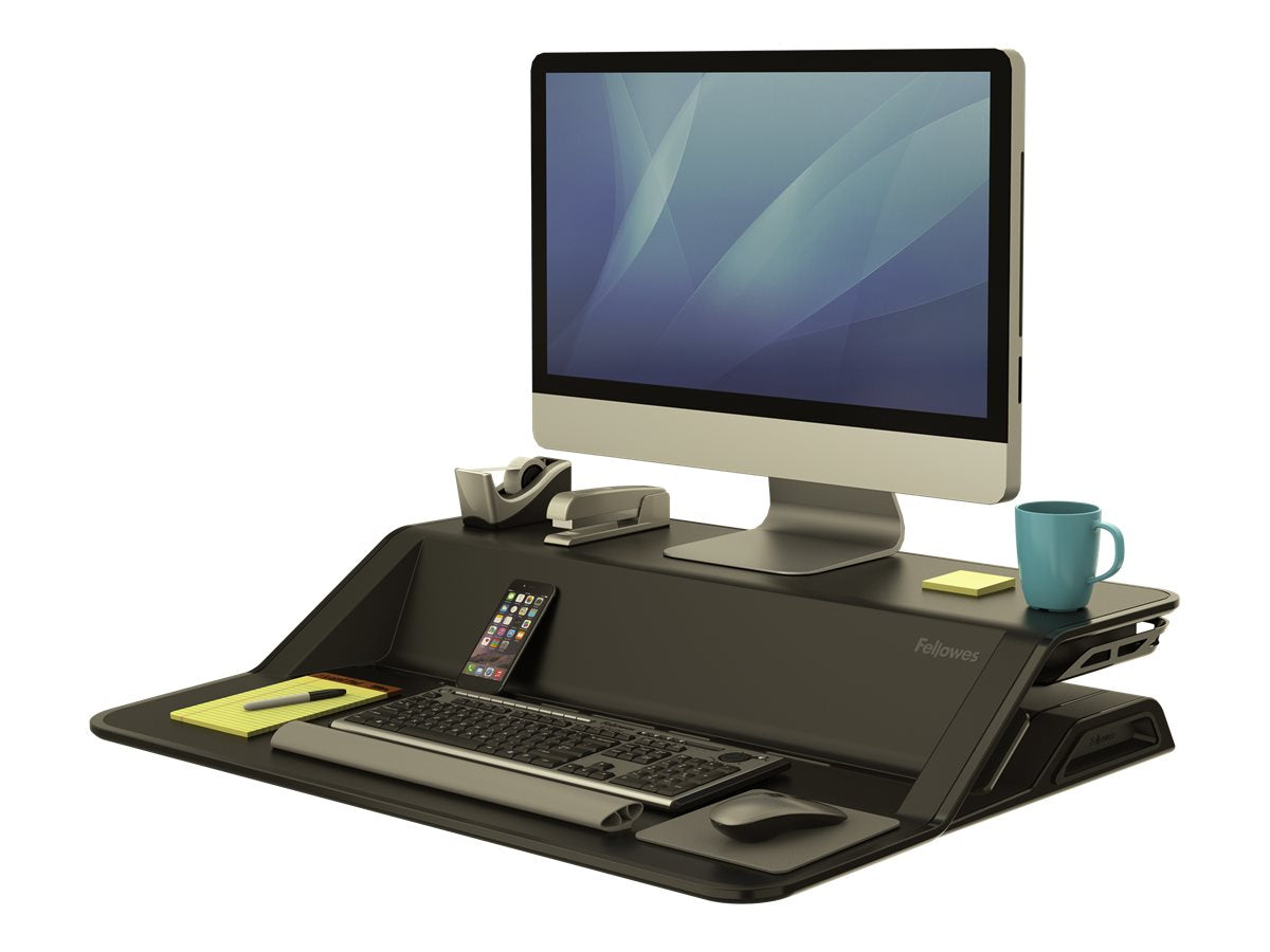 Fellowes Lotus Sit-Stand Workstation - Pied - Waterfall - pour écran LCD/équipement PC - acier - noirSolution de poste de travail Assis-debout, encourageant l'utilisateur à réduire le travail sédentaire et incite à la mobilité.