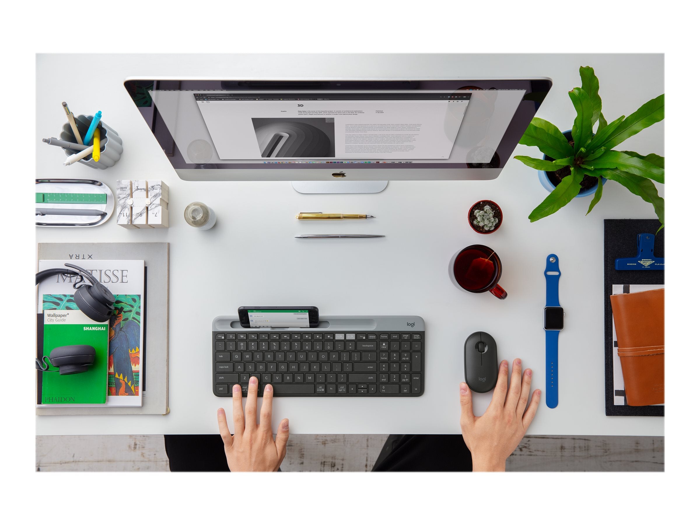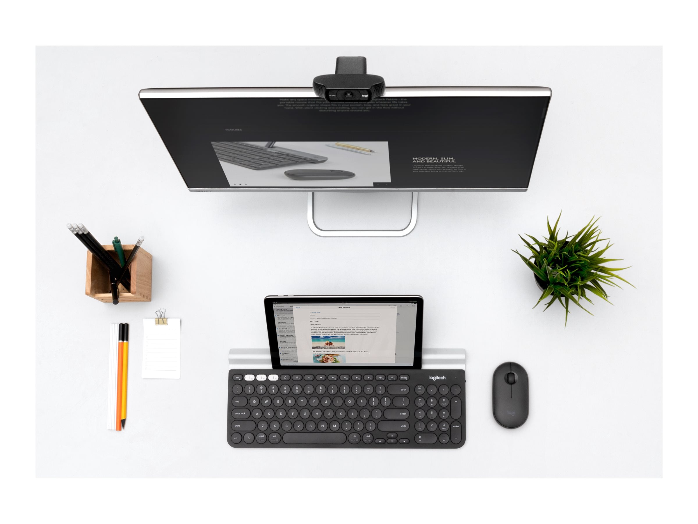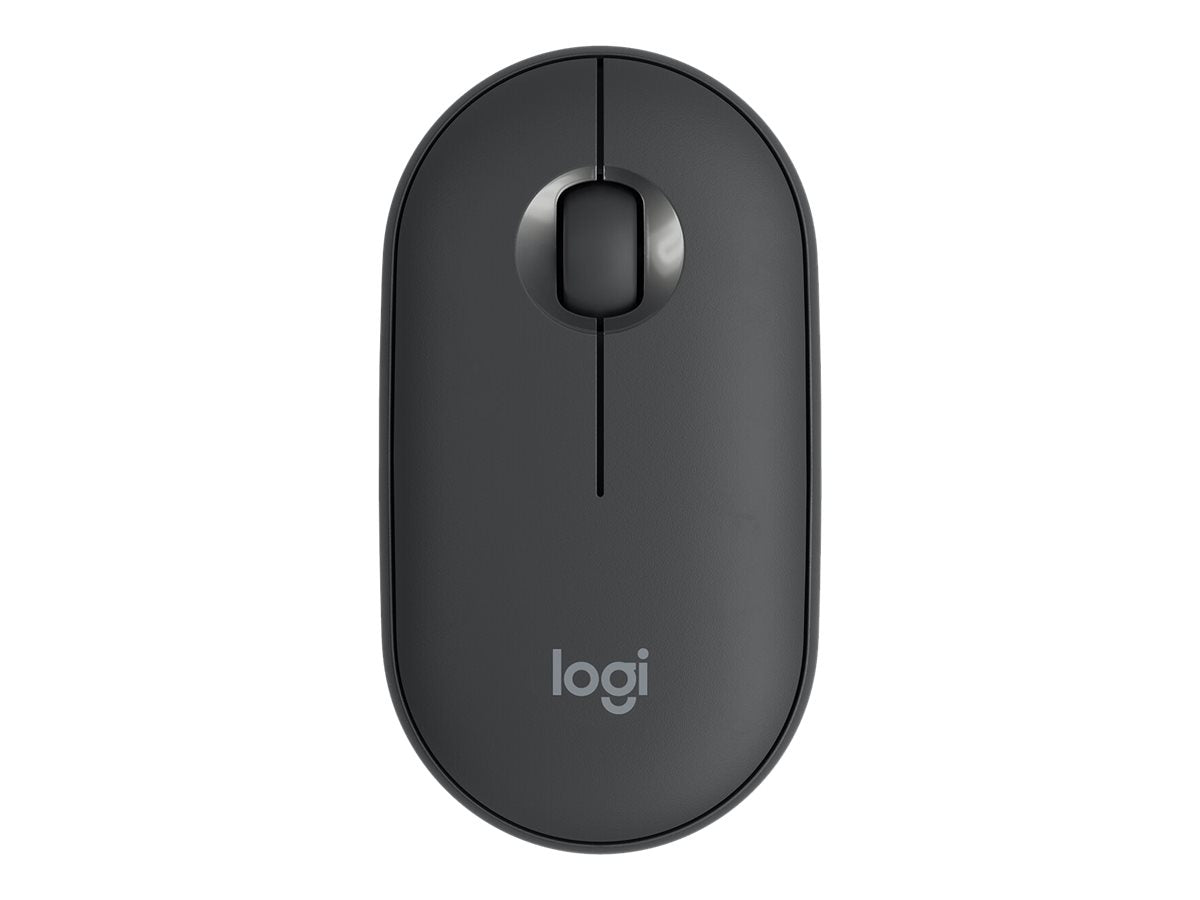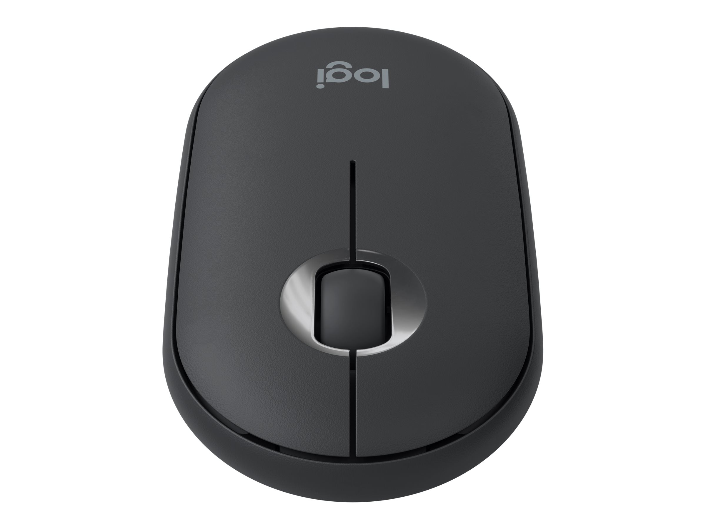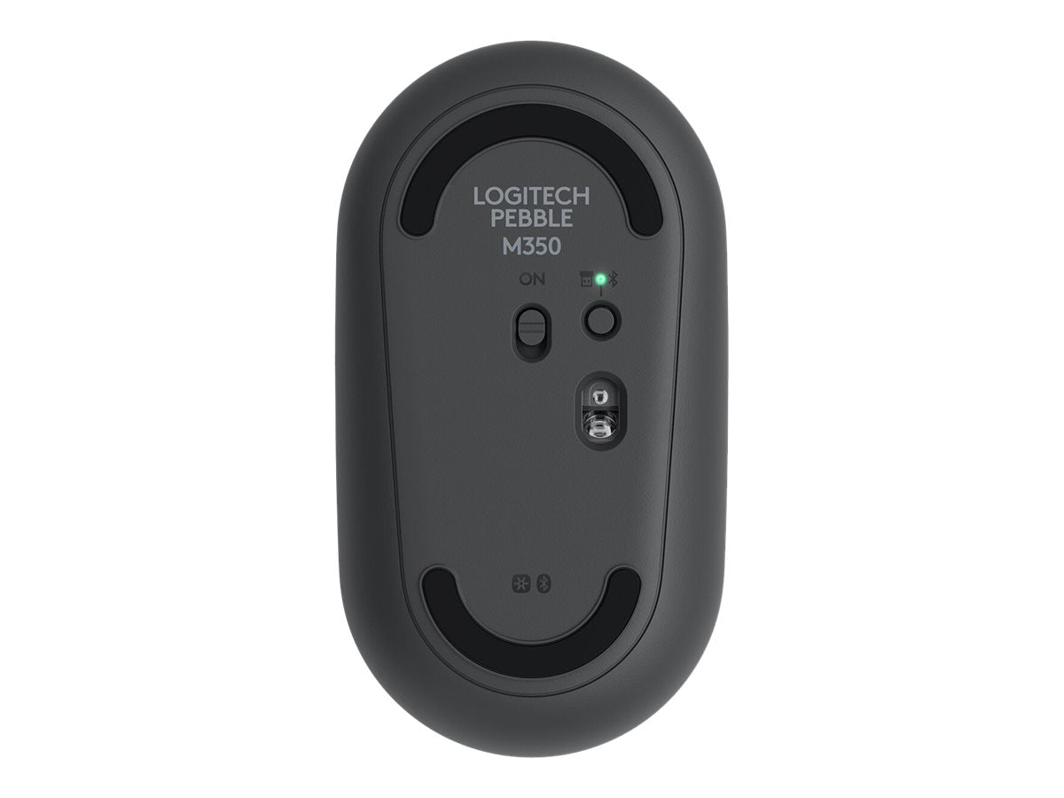 Logitech Pebble M350 - Souris - optique - 3 boutons - sans fil - 2.4 GHz, Bluetooth - récepteur sans fil USB - graphiteTransformez n'importe quel espace en un espace minimaliste, moderne et silencieux avec Logitech Pebble, la souris portable qui s'adapte à votre style de vie et qui vous accompagne dans toutes vos aventures. Sa forme organique lisse tient dans votre poche ou votre sac, et offre une prise en main confortable. Grâce à ses clics et son défilement silencieux, vous pouvez vous mettre au travail sans déranger ceux qui vous entourent.