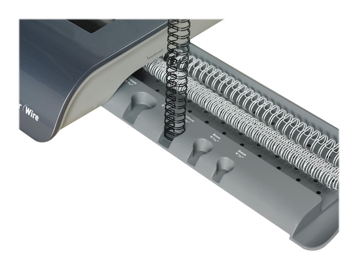 Fellowes Quasar 130 - Machine à relier - fil métallique - diamètre max. : 14 mm - perforation : 15 feuilles - reliure : 130 feuillesLe perforelieur Quasar Wire par anneaux métal est conçu pour une utilisation fréquente au bureau, il donne un rendu professionnel à vos présentations. Sa barre de perforation transversale permet de perforer jusqu'à 15 feuilles sans effort. Sa capacité se reliure est de 130 feuilles. Le Perforeliuer Quasar Wire est conçu pour une grande simplicité d'utilisation. Butée de taquage pour un alignement précis du document, bac de rangement des anneaux et sélecteur du diamètre de l'anneau pour un choix rapide du consommable. Livré avec un kit de consommables pour relier 20 documents. Garantie de 2 ans.