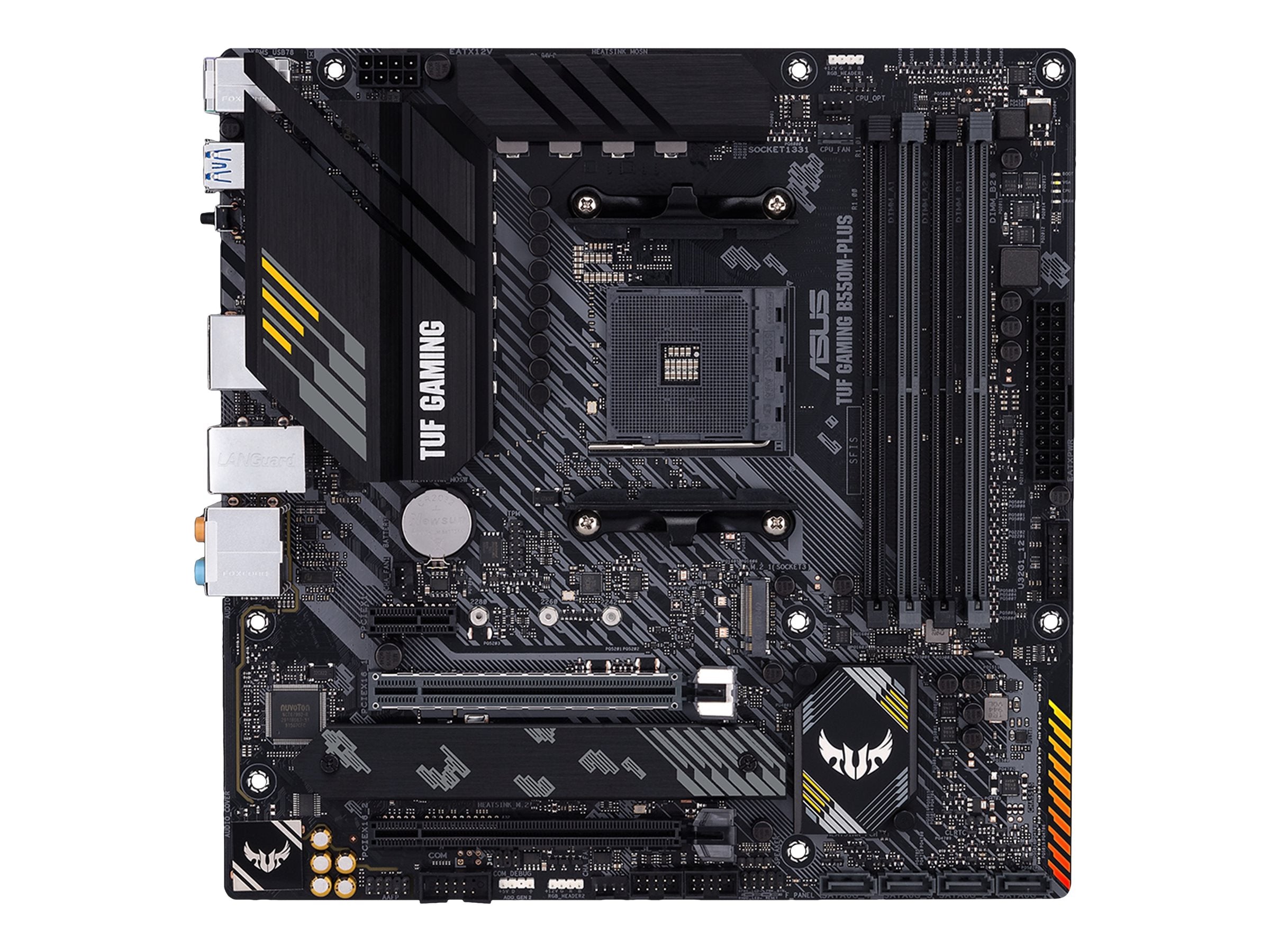ASUS TUF GAMING B550M-PLUS mATX MB PCIe 4.0 dual M.2 10 DrMOS power stages 2.5Gb Ethernet HDMI DisplayPort SATA 6Gbps