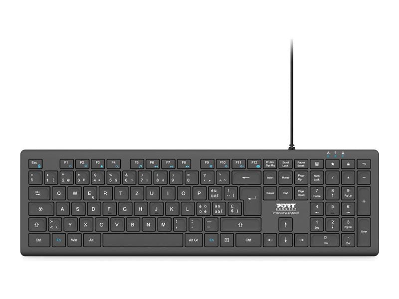 PORT Connect EXECUTIVE OFFICE - Clavier - USB, USB-C - SuédoisLe clavier USB PORT Connect Executive Office dispose de 109 touches confortables (configuration suédoise) et convient parfaitement aux professionnels qui recherchent un clavier haut de gamme, fin et élégant. Sa technologie de touches ciseaux assure une grande précision de frappe pour une productivité maximale. Profitez d'une expérience fluide et réactive grâce aux 6 raccourcis multimédia et aux indicateurs LED de verrouillage des chiffres, des majuscules et du défilement. Compatible avec tous les PC, il suffit de le connecter via USB-A ou USB-C à votre ordinateur pour commencer à travailler. Aucun pilote n'est nécessaire grâce à son installation Plug et Play.