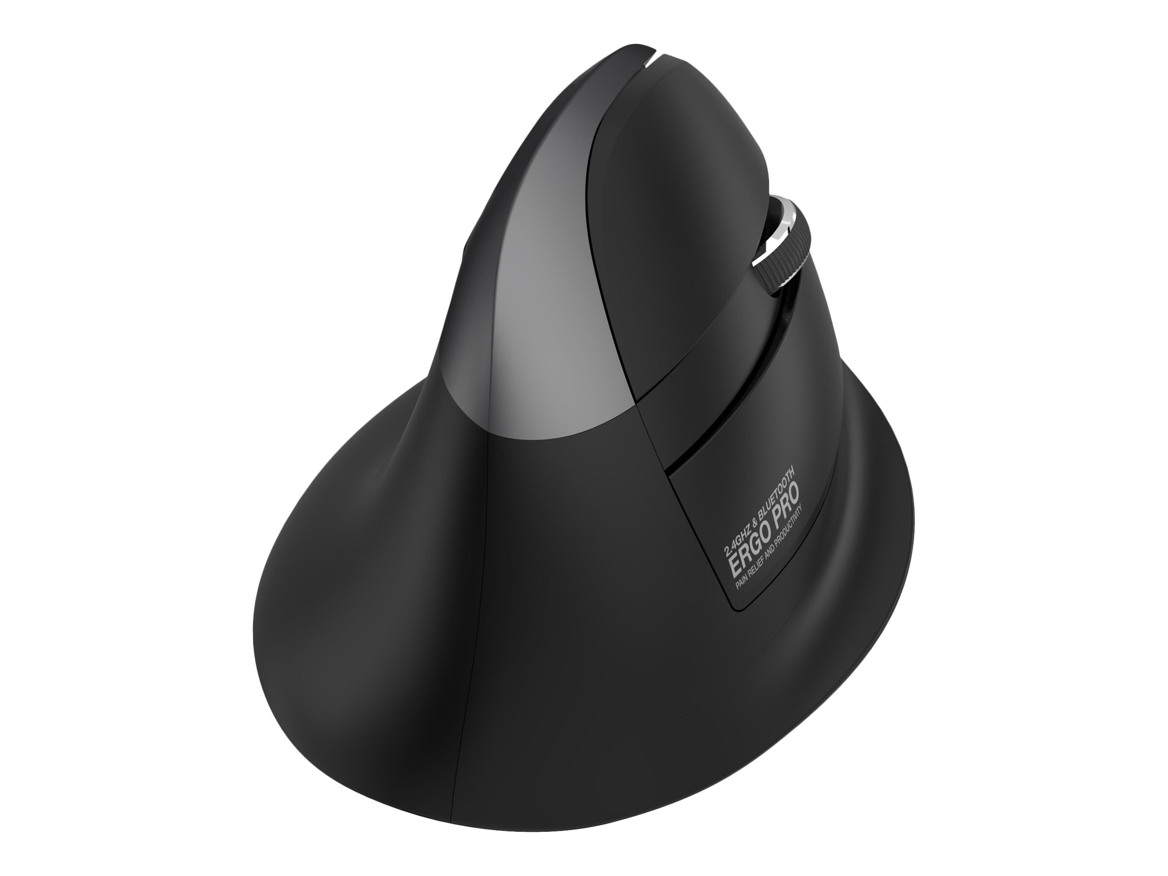 Urban Factory ERGO PRO - Souris - ergonomique - vertical - pour gauchers - 6 boutons - sans fil - Bluetooth 5.0, 2.4 GHz - récepteur sans fil USB - noirERGO PRO est une souris ergonomique verticale sans fil 2.4Ghz et Bluetooth 5.0. L'ERGO PRO a été conçue pour eviter les torsions du bras et du poignet et donc soulager l'utilisateur lors d'un usage prolongé de la souris. La résolution du capteur se règle de 800 à 4000 DPI sur le côté de la souris. C'est une souris à 6 boutons rechargeable grâce à son port USB-C et sa batterie intégrée de 1.000mAh qui vous offrira jusqu'à 30 jours d'autonomie. Elle se connecte soit en 2.4Ghz à l'aide d'un mini récepteur fourni soit en Bluetooth 5.0 afin d'assurer une connexion sans fil. Ses clics silencieux vous apporteront un confort de travail optimal ainsi que son câble de charge USB-C de 1.4mètres.