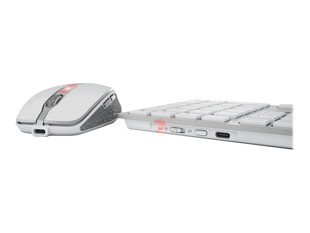CHERRY DW 9100 SLIM - Ensemble clavier et souris - sans fil - 2.4 GHz, Bluetooth 4.0 - US avec le symbole de l'euro - blanc, argentEnsemble sans fil Bluetooth ou radio 2,4 GHz, rechargeable, sécurisé AES 128 bits.
