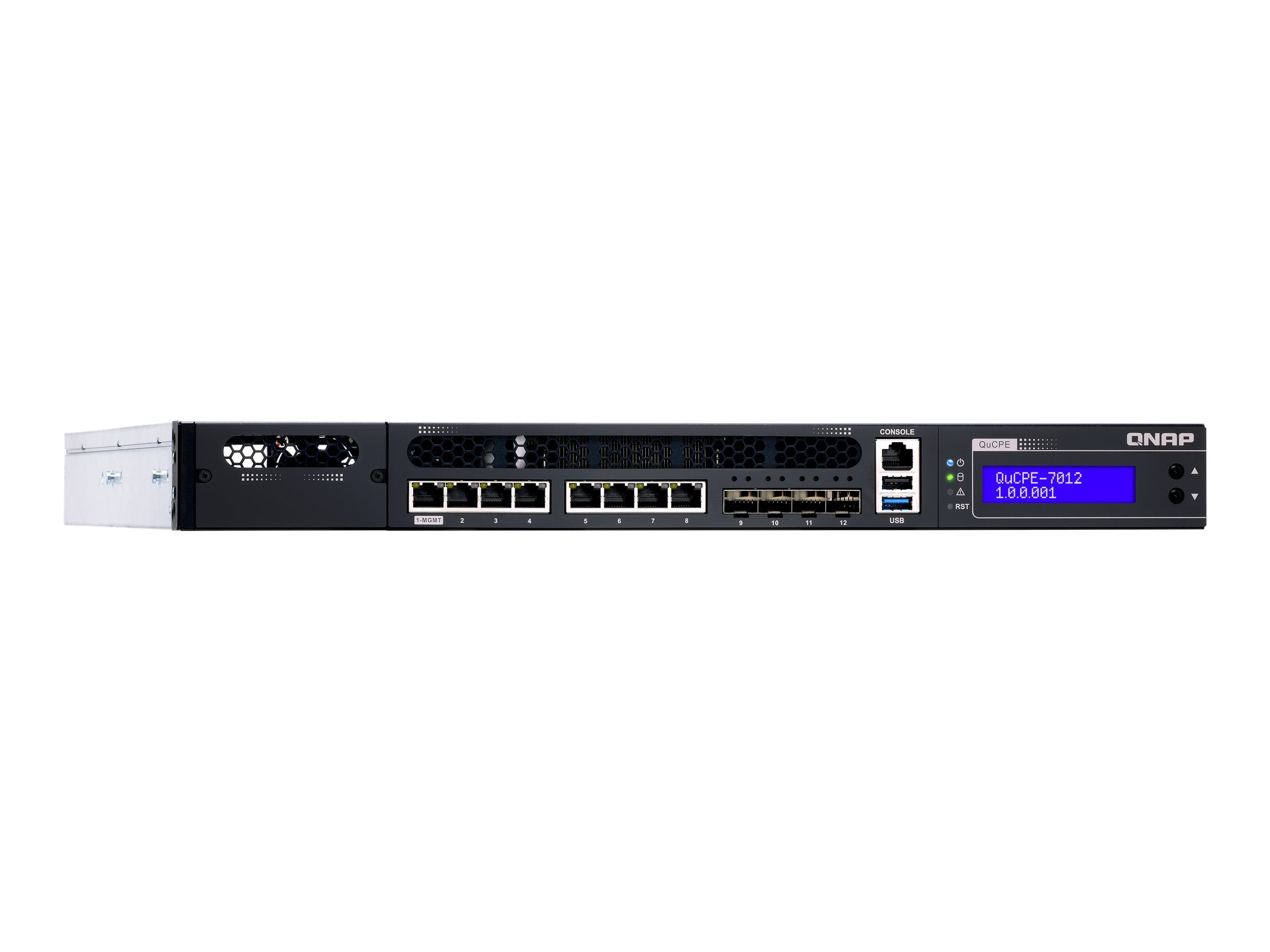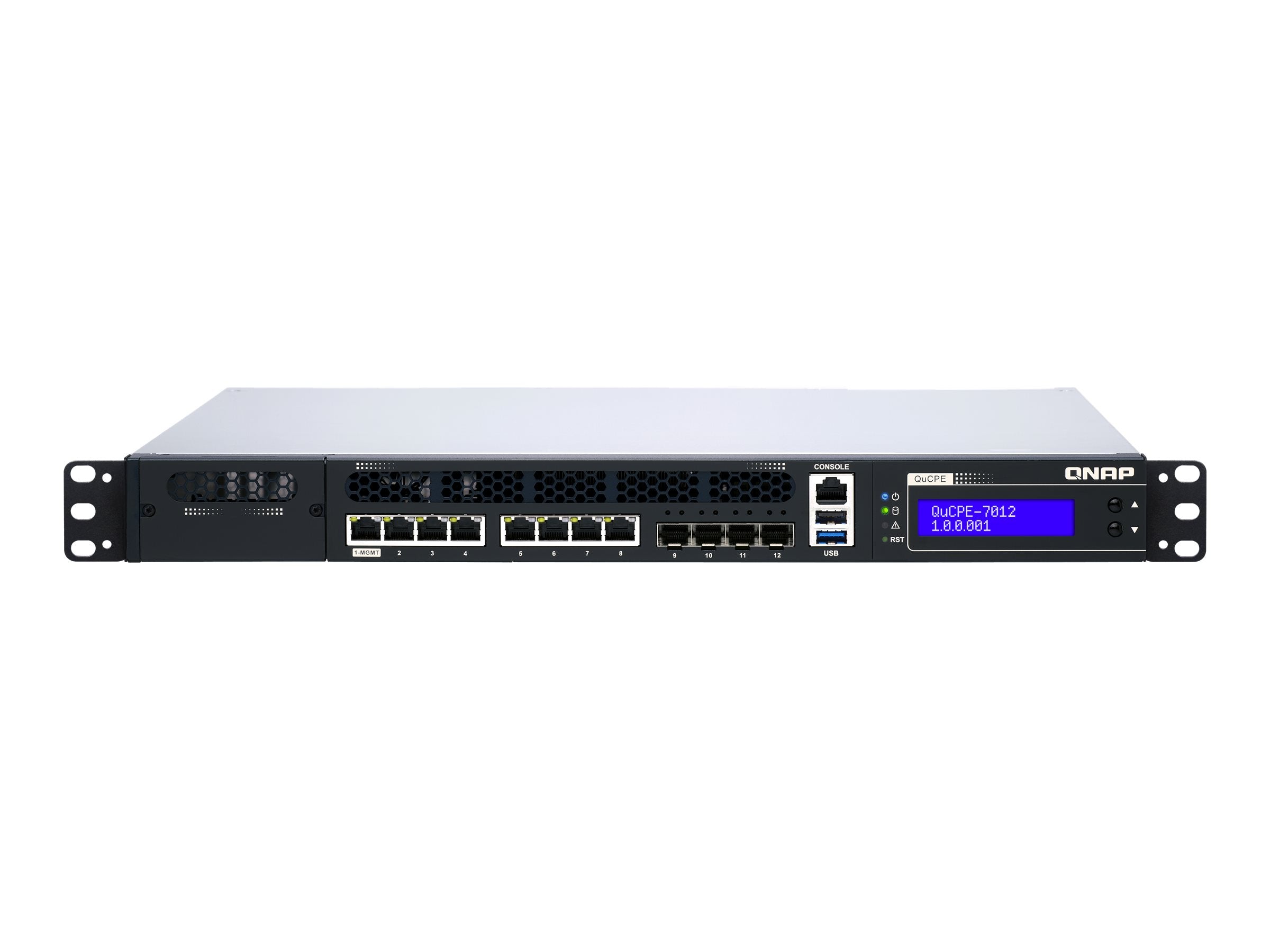 QNAP QuCPE-7012-D2146NT-32G Intel Xeon D-2146NT 8x2.5GbE RJ45 ports and 4x10GbE SFP+ ports 1x network module 1x PCIe Gen3 x8