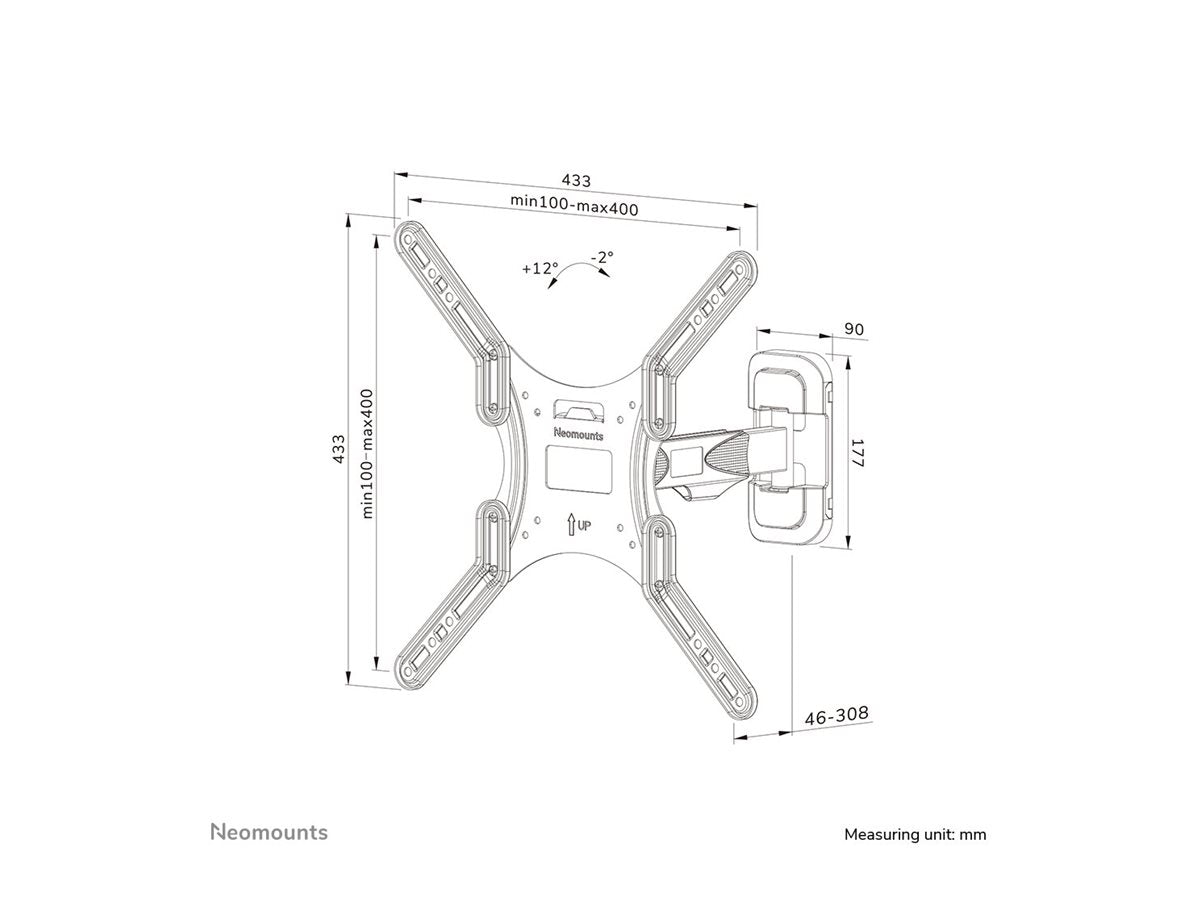 Le WL40-540BL14 a une profondeur de 4,6-30,8 cm et convient aux écrans conformes au modèle de trous VESA 100x100 à 400x400 mm.
