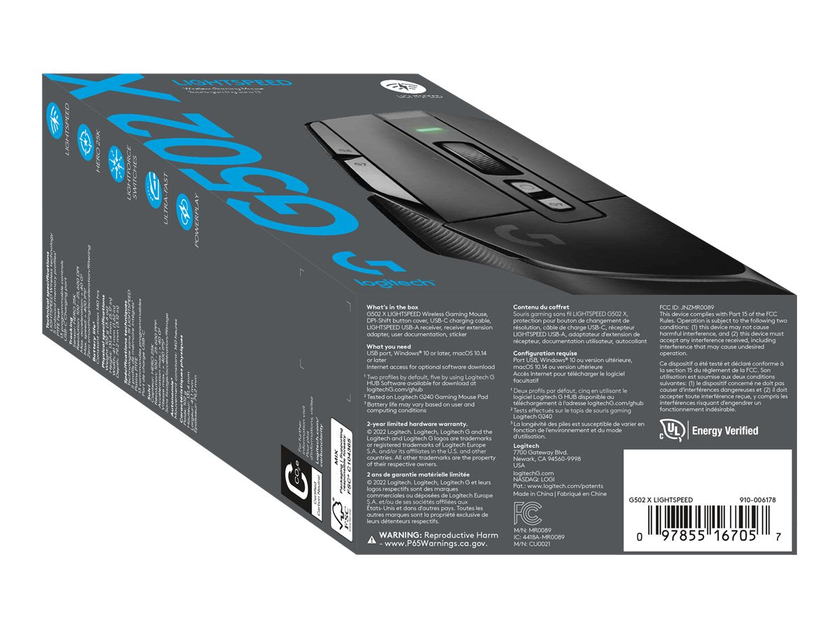 Logitech G G502 X LIGHTSPEED - Souris - optique - 8 boutons - sans fil - 2.4 GHz - récepteur USB Logitech LIGHTSPEED - noirLa souris G502 X LIGHTSPEED est revisitée et réinventée avec les technologies de jeu innovantes, et notamment avec les switchs hybrides LIGHTFORCE, la technologie sans fil LIGHTSPEED de qualité professionnelle, et le capteur HERO 25K. La souris G502 X LIGHTSPEED est également compatible avec POWERPLAY, pour ne jamais être à court d'énergie.