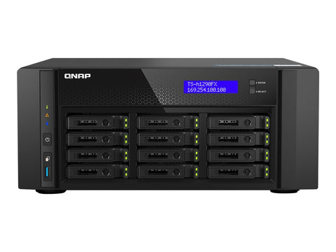 QNAP TS-h1290FX-7302P-256G 12-Bay NAS AMD EPYC 7302P 16-core up to 3.3GHz 12x2.5p U.2 NVMe/SATA SSD bays 256Go RDIMM ECC