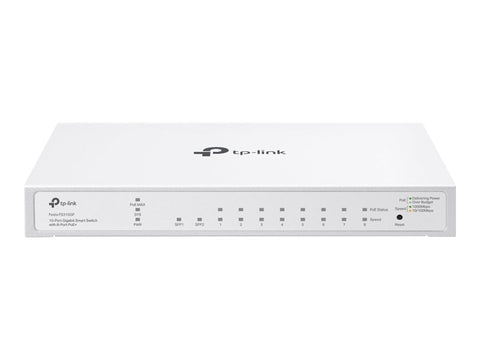 TP-LINK 10-Port Gigabit Smart Switch with 8-Port PoE+ 8x Gigabit PoE+ Ports 2x Gigabit SFP Slots 802.3af/at 61 W PoE Power