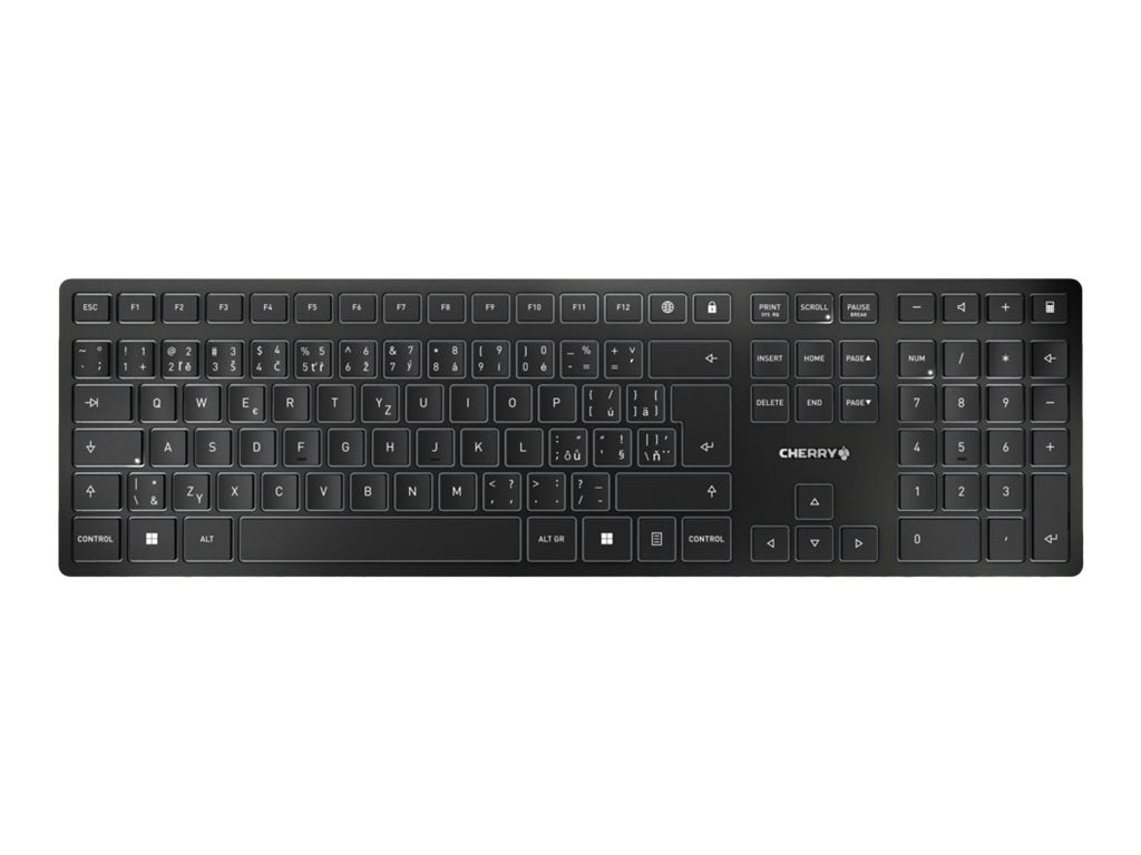 CHERRY KW 9100 SLIM - Clavier - sans fil - 2.4 GHz, Bluetooth 4.0 - Tchèque/Slovène - commutateur : CHERRY SX - noir, argentClavier sans fil rechargeable pour les plus exigeants.