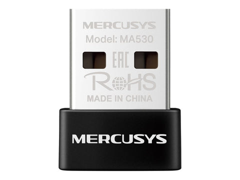 Mercusys MA530 V1 - Adaptateur réseau - USB 2.0 - Bluetooth 5.3, Bluetooth LEL'adaptateur réseau Mercusys MA530 V1 améliore la connectivité et les performances de votre installation informatique. Conçu dans un souci de fonctionnalité et de commodité, cet adaptateur Bluetooth externe de taille nanométrique s'intègre parfaitement dans n'importe quel port USB 2.0 sans entraver les autres connexions. Équipé de la norme Bluetooth 5.3, il garantit des vitesses de transfert de données plus rapides, une portée étendue jusqu'à 20 m dans un espace ouvert et des performances fiables sur une large gamme d'appareils Bluetooth. Adapté à une utilisation domestique ou professionnelle, le MA530 V1 fonctionne efficacement dans diverses conditions environnementales, supportant des plages d'humidité de 10 à 90 % (sans condensation) et des températures de 0°C à 40°C. Faites l'expérience d'une connectivité améliorée avec le Mercusys MA530 V1.