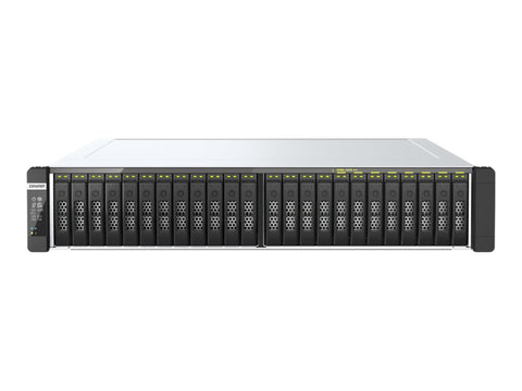 QNAP TDS-h2489FU R2 - Serveur NAS - 24 Baies - rack-montable - SATA-600 / NVMe - RAID JBOD, 0, 1, 10, 5, 50, 6, 60 - RAM 64 Go - 25 Gigabit Ethernet / 2.5 Gigabit Ethernet - iSCSI support - 2ULe QNAP TDS-h2489FU R2 est conçu pour fournir des solutions de stockage polyvalentes et efficaces. Avec un châssis robuste qui prend en charge jusqu'à 24 disques de 2,5 pouces échangeables à chaud, il permet une extension transparente à mesure que les besoins de stockage augmentent. Le panneau LED dédié, associé à six ventilateurs de refroidissement intégrés, garantit des performances optimales même en cas de charges de travail importantes. Il prend en charge plusieurs protocoles réseau, dont 25 Gigabit Ethernet, assurant un transfert de données rapide et fiable, ce qui le rend adapté aux environnements exigeants.