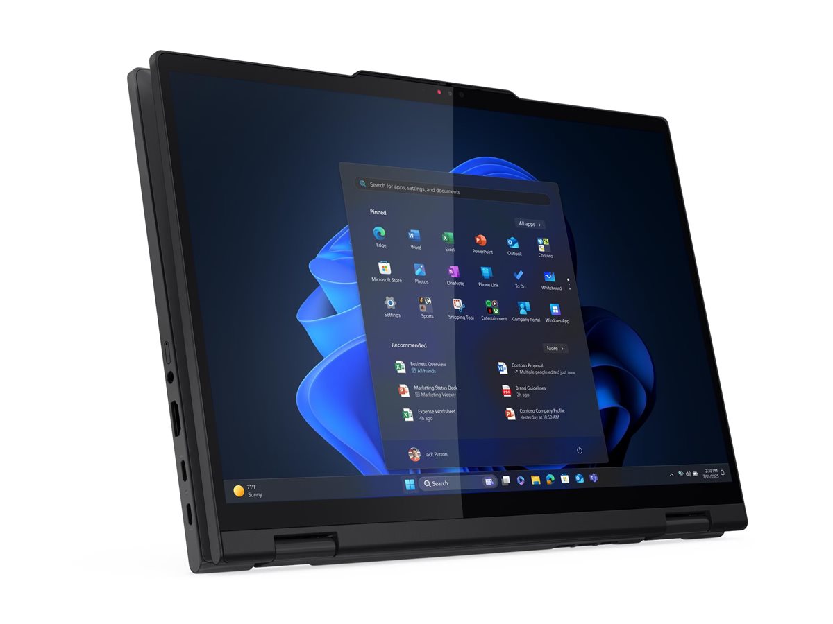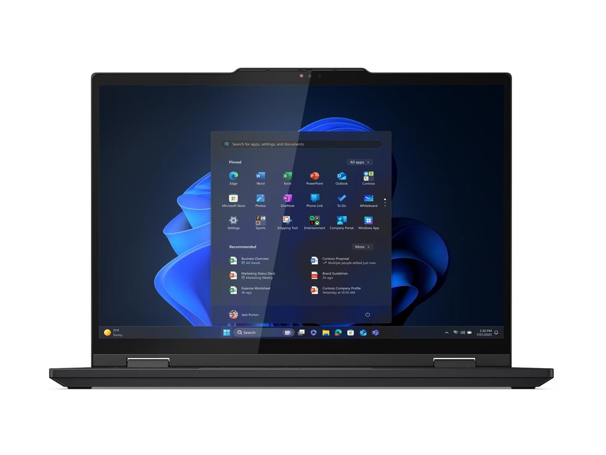 Lenovo ThinkPad T14s 2-in-1 Gen 1 21R3 - Conception inclinable - Intel Core Ultra 7 - 255U / jusqu'à 5.2 GHz - Win 11 Pro - Intel Graphics - 32 Go RAM - 1 To SSD TCG Opal Encryption 2, NVMe, Performance - 14" IPS écran tactile 1920 x 1200 - Wi-Fi 7, Bluetooth - évolutif 5G - noir - clavier : Français - avec 3 ans de support Lenovo Premier, compensation CO2 0,5 tonne (2e génération)Le Lenovo ThinkPad T14s 2-en-1 Gen 1 allie polyvalence et performances, ce qui en fait un choix idéal pour les professionnels en déplacement. Grâce à son design flexible à 360°, cet appareil peut être utilisé à la fois comme ordinateur portable et comme tablette, s'adaptant ainsi facilement à tous les types de travail. L'écran tactile IPS de 14 pouces offre une résolution de 1920 x 1200, garantissant des images éclatantes et une expérience utilisateur captivante. Équipé d'un puissant processeur Intel et de 10 cœurs efficaces, le Lenovo ThinkPad T14s assure un multitâche fluide. La mémoire est soutenue par la technologie SDRAM LPDDR5X, tandis que la webcam de 5 mégapixels est dotée d'un obturateur de confidentialité pour des communications vidéo sécurisées. Grâce au Dolby Audio intégré et aux haut-parleurs stéréo, les utilisateurs peuvent s'attendre à un son de haute qualité pour compléter leurs expériences multimédias. Cet appareil est conforme aux normes MIL-STD-810H, ce qui maximise sa durabilité et sa résistance pour une utilisation quotidienne.