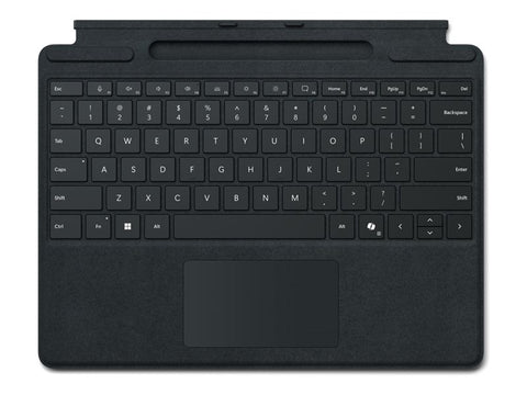Microsoft Surface Pro Keyboard for Business - Clavier - avec rangement pour stylos - avec accéléromètre, pavé tactile, plateau de stockage et de recharge du Surface Slim Pen - rétroéclairé - AZERTY - Français - noir - avec Slim Pen - pour Surface Pro 10 for Business, Pro 8 for Business, Pro 9 for Business, Pro X for BusinessLe clavier Surface Pro Keyboard for Business de Microsoft allie fonctionnalité et design élégant, spécialement conçu pour un usage professionnel. Doté d'une technologie de clavier mécanique, il offre une expérience de frappe réactive qui améliore la productivité des utilisateurs. Grâce à ses capacités d'accéléromètre intégrées, ce clavier s'adapte à votre environnement, garantissant des performances optimales dans divers contextes. Conçu pour s'intégrer parfaitement aux flux de travail des entreprises, il comprend une touche Copilot dédiée qui rationalise l'accès aux outils et applications essentiels.