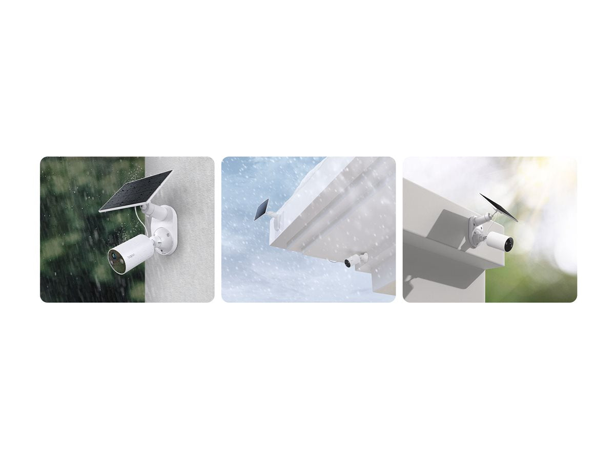 Tapo TC82 KIT V1 - Caméra de surveillance réseau - intérieur, extérieur - résistant aux intempéries - couleur (Jour et nuit) - 3 MP - 2304 x 1296 - 2K - Focale fixe - audio - sans fil - Wi-Fi - 2.4GHz radio - H.264 - avec Panneau solaire Tapo A201Le Tapo TC82 KIT V1, associé au panneau solaire Tapo A201, redéfinit la sécurité domestique grâce à ses fonctionnalités et à sa solution d'alimentation durable. Cette caméra de surveillance réseau offre une capture vidéo haute résolution de 2304 x 1296 pixels, garantissant une clarté d'image exceptionnelle. Grâce à l'intégration de la technologie Starlight et de la plage dynamique étendue, elle offre des performances exceptionnelles dans diverses conditions d'éclairage, de la lumière du jour aux environnements faiblement éclairés.