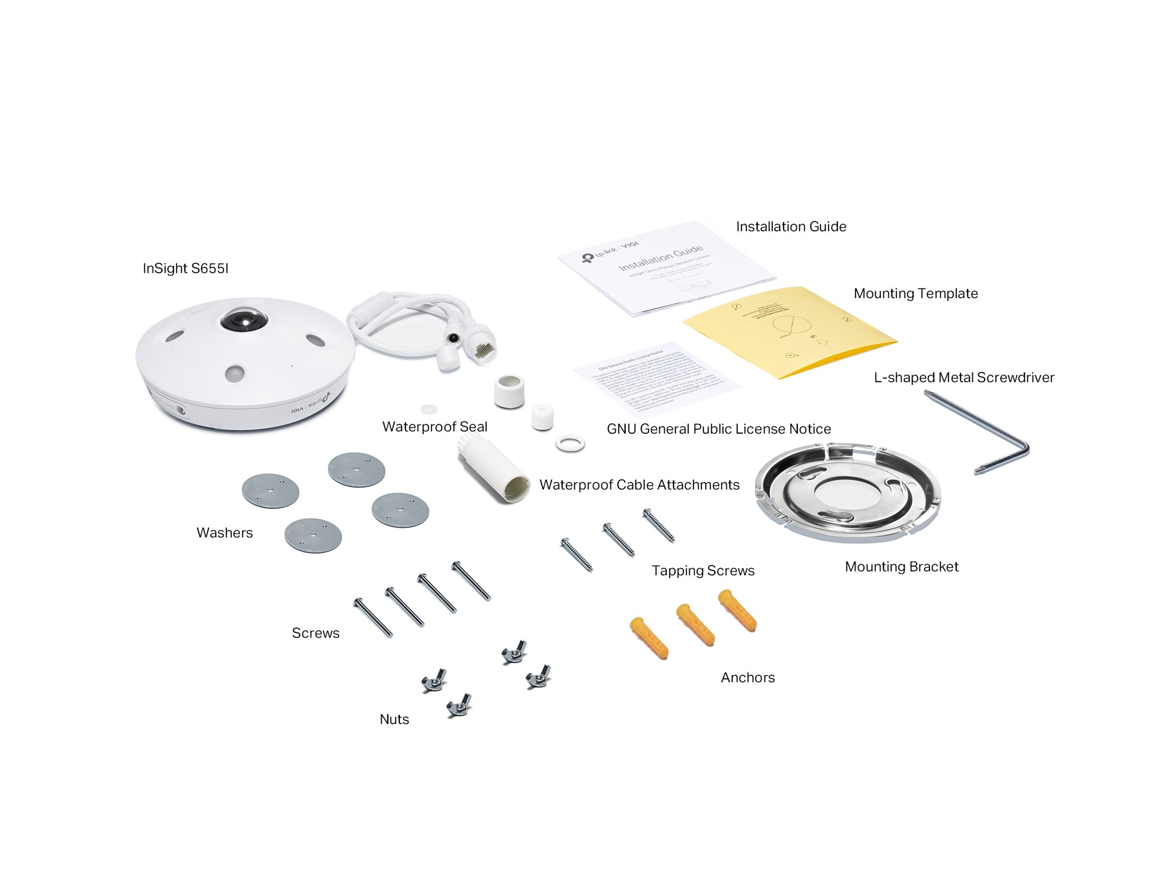 TP-Link VIGI InSight S655I V1 - Caméra de surveillance réseau - fisheye - intérieur - Etanche - couleur (Jour et nuit) - 5 MP - 2560 x 1920 - montage M12 - Focale fixe - audio - LAN 10/100 - H.265+, H.265, H.264+, H.264 - CC 12 V / PoELa caméra TP-Link VIGI InSight S655I V1 est conçue pour répondre à des besoins de surveillance complets, offrant une vue panoramique à 180 degrés qui capture chaque détail. Elle fonctionne efficacement à des températures allant de -30 °C à 60 °C et bénéficie d'un indice de protection IP67 robuste contre les intempéries, ce qui la rend adaptée à divers environnements. Avec un niveau d'éclairage minimum de 0,005 lux, cette caméra excelle dans des conditions de faible luminosité, assurant une clarté optimale en mode jour comme en mode nuit. Dotée de fonctions telles que la détection de mouvement, la détection de sabotage vidéo et la détection de zone, la caméra InSight S655I V1 renforce la sécurité en alertant les utilisateurs en cas d'événements importants. Elle prend en charge plusieurs formats vidéo jusqu'à une résolution de 2560 x 1920, ce qui la rend polyvalente pour diverses applications. La caméra est également équipée de la technologie Smart IR et d'un haut-parleur intégré pour une capacité audio bidirectionnelle.