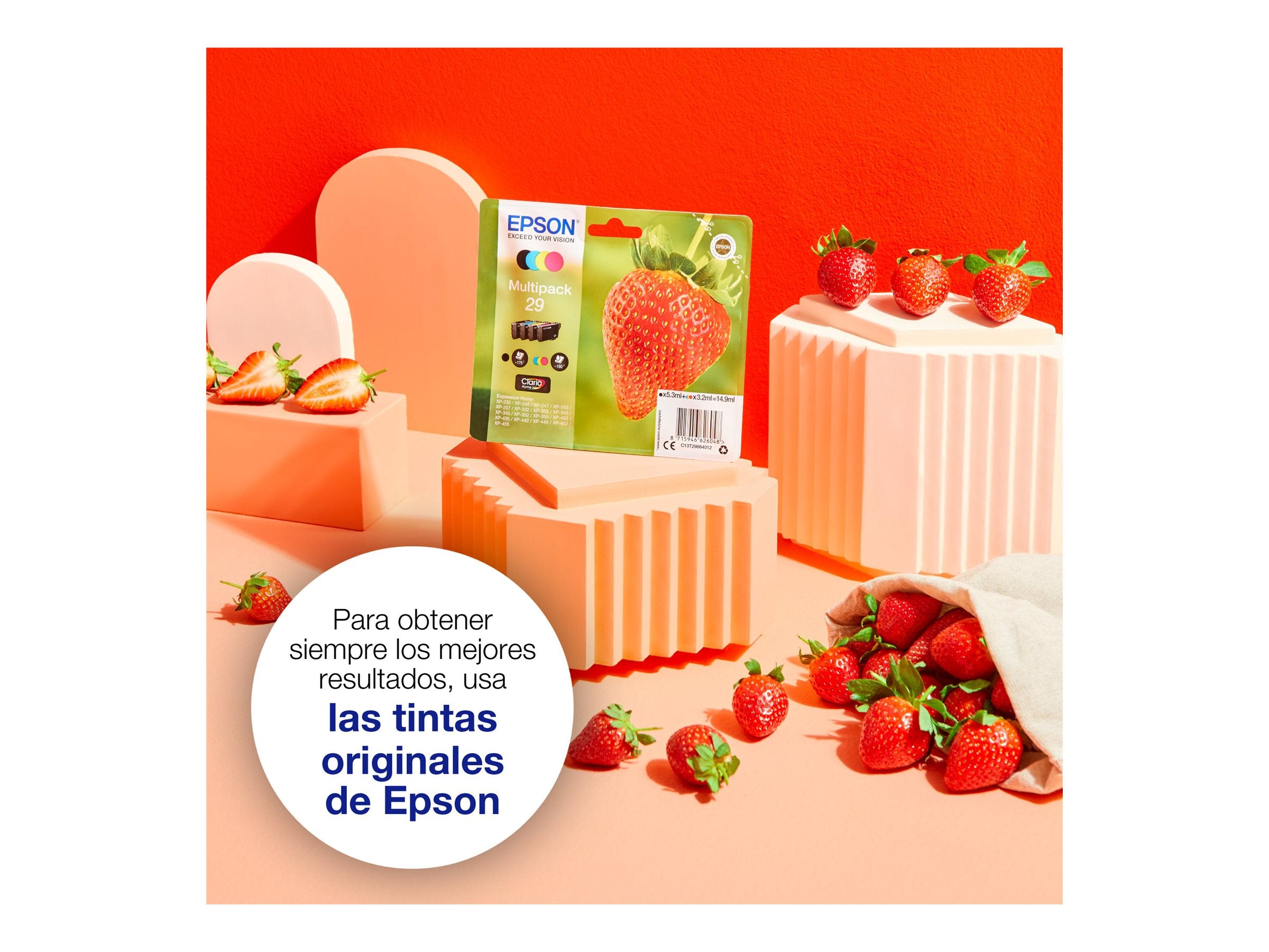 Epson 29 Multipack - Pack de 4 - noir, jaune, cyan, magenta - original - blister - cartouche d'encre - pour Expression Home XP-245, 247, 255, 257, 332, 342, 345, 352, 355, 435, 442, 445, 452, 455L'encre Epson Claria Home Ink se présente sous la forme d'un kit de cartouches d'encre 4 couleurs polyvalent qui permet d'imprimer des textes nets et précis, ainsi que des photos brillantes et de qualité professionnelle. Elle est idéale pour imprimer à un coût raisonnable et en toute fiabilité, sans compromis sur la qualité.