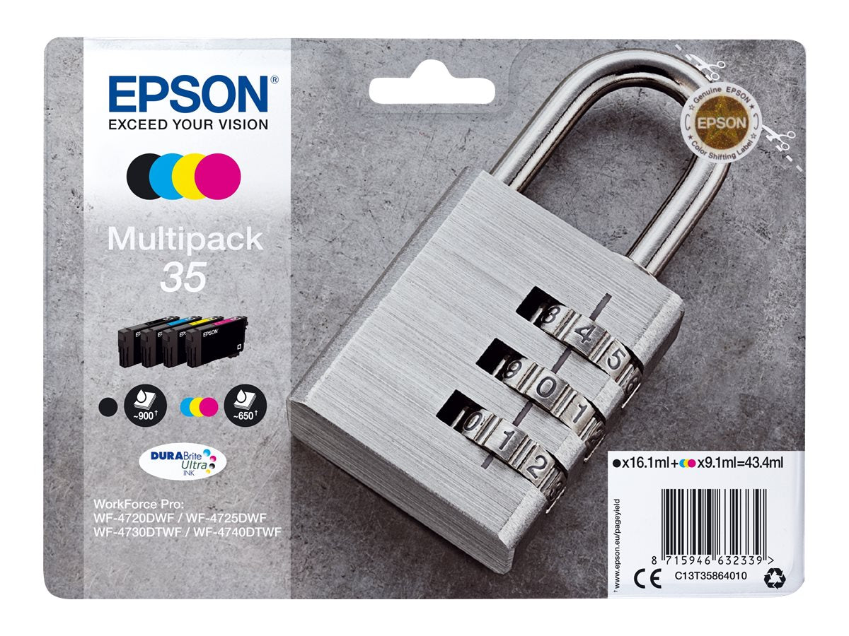 Epson 35 Multipack - Pack de 4 - noir, jaune, cyan, magenta - original - blister - cartouche d'encre - pour WorkForce Pro WF-4720, WF-4720DWF, WF-4725DWF, WF-4730, WF-4730DTWF, WF-4740, WF-4740DTWFRéduisez vos coûts d'impression
