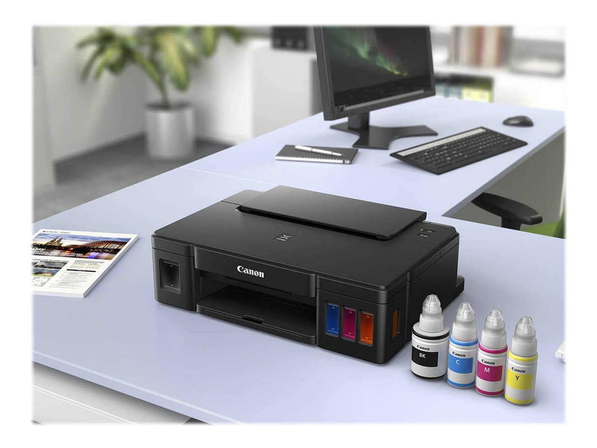 Canon PIXMA G1501 - Imprimante - couleur - jet d'encre - A4/Legal - jusqu'à 8.8 ipm (mono) / jusqu'à 5 ipm (couleur) - capacité : 100 feuilles - USB 2.0Imprimante compacte rechargeable avec des encres haut rendement pour réaliser des impressions à faible coût de photos éclatantes et de documents nets à la maison.