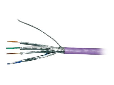 MCL - Câble en vrac - 100 m - SFTP - CAT 6a - IEEE 802.5 - sans halogène - violetLes câbles catégorie 6A permettent de transmettre des données à des fréquences jusqu'à 500 MHz et à des débits théoriques pouvant atteindre 10 Gbit/s sur une longueur de 100m.
