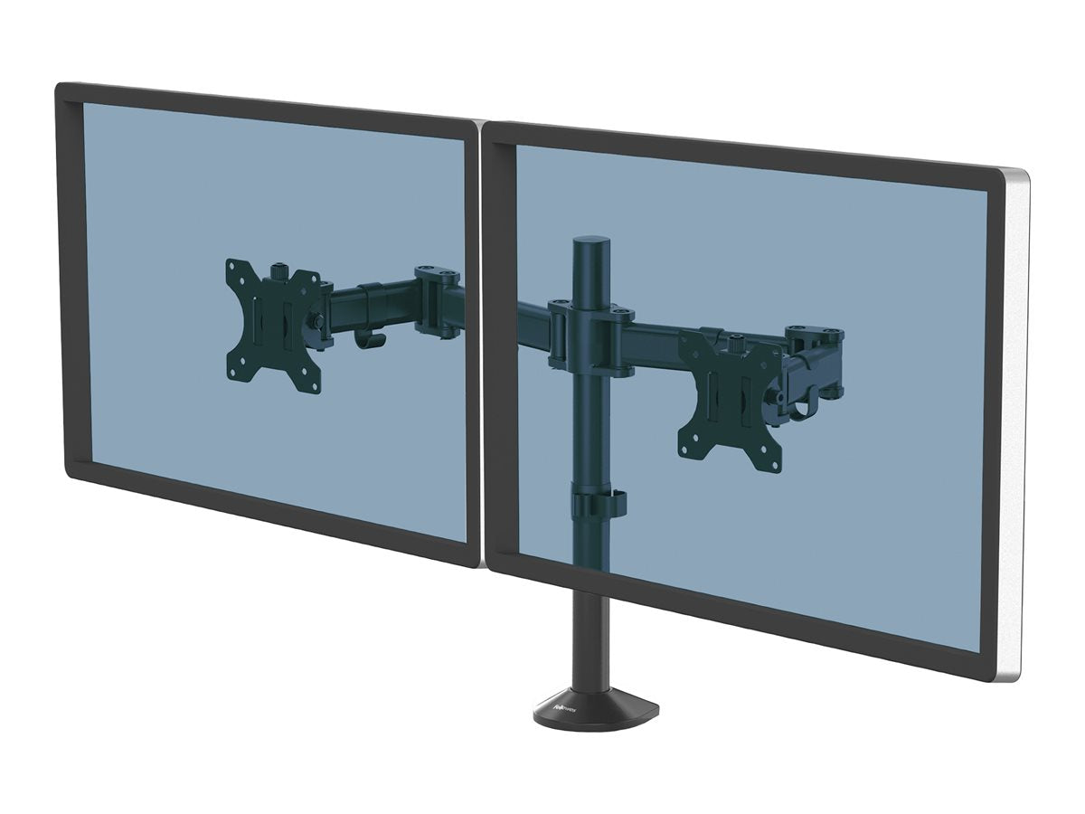 Fellowes Reflex Dual Monitor Arm - Kit de montage - bras réglable - pour 2 moniteurs - métal - noir, RAL 9017 - Taille d'écran : jusqu'à 27 pouces - montrable sur bureauLe bras porte-écran Reflex maximise l'espace sur votre bureau et relève votre écran pour réduire les douleurs cervicales et éviter la fatigue oculaire.
