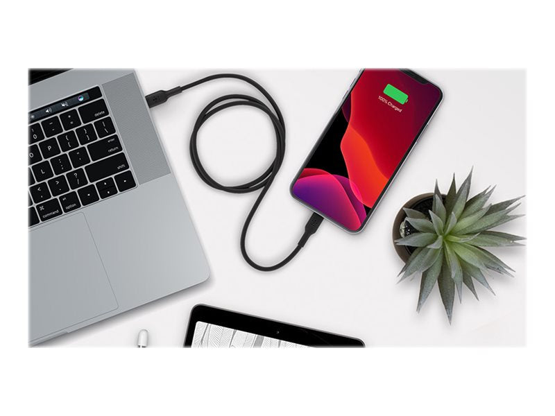 Belkin BOOST CHARGE - Câble Lightning - 24 pin USB-C mâle pour Lightning mâle - 1 m - noir - Alimentation USB (18 W)Rechargez en mode Charge rapide ou synchronisez facilement votre musique et vos photos sur votre iPhone ou iPad avec ce câble USB-C vers Lightning certifié MFi et fiable. En l'utilisant avec un chargeur USB-PD de 18 W, ce câble peut recharger votre iPhone jusqu'à 50 % en quelques minutes. La certification MFi vous assure que le câble USB-C vers Lightning de Belkin fonctionne avec votre iPhone et iPad. Vous obtenez ainsi une totale tranquillité d'esprit.