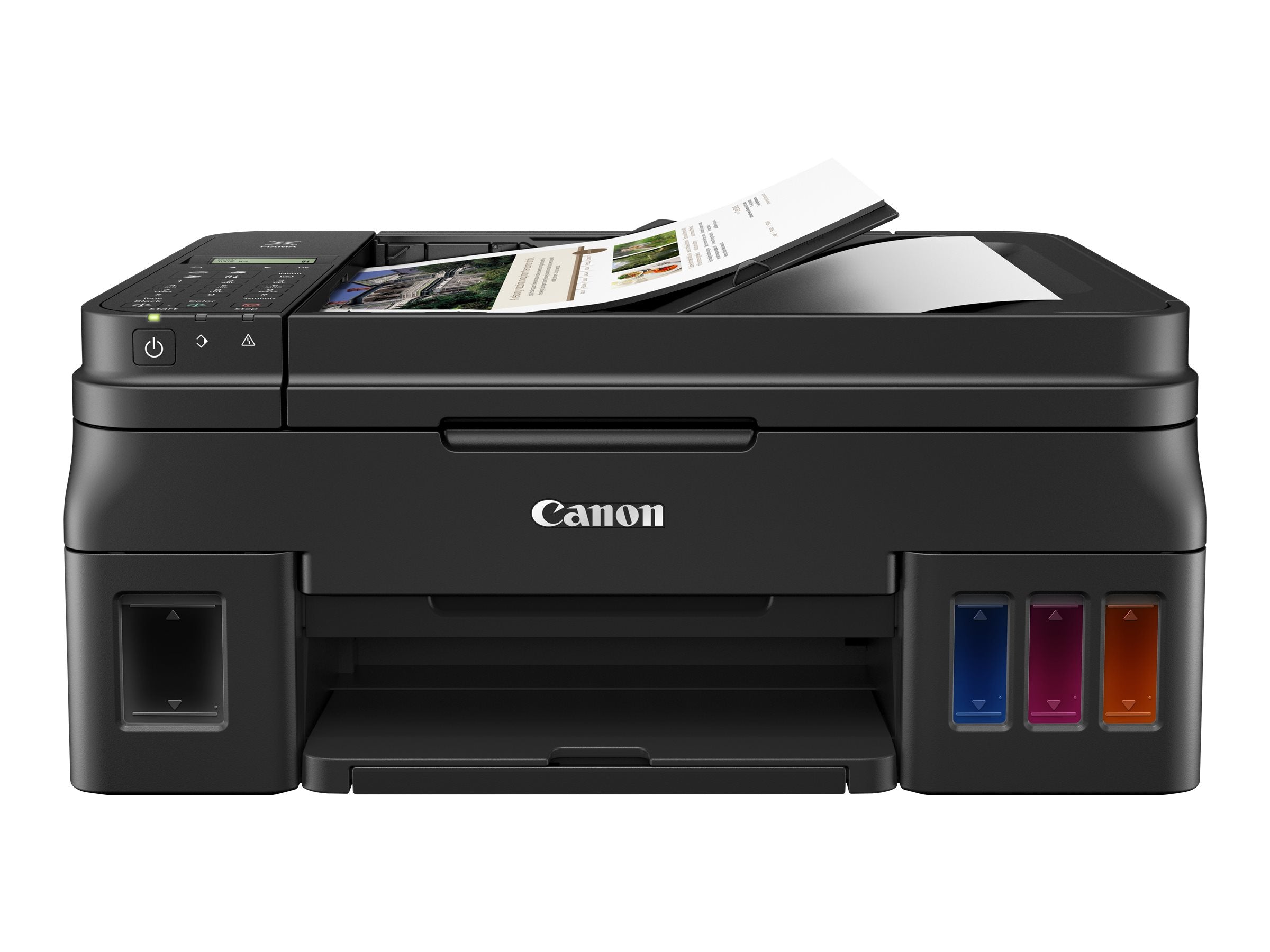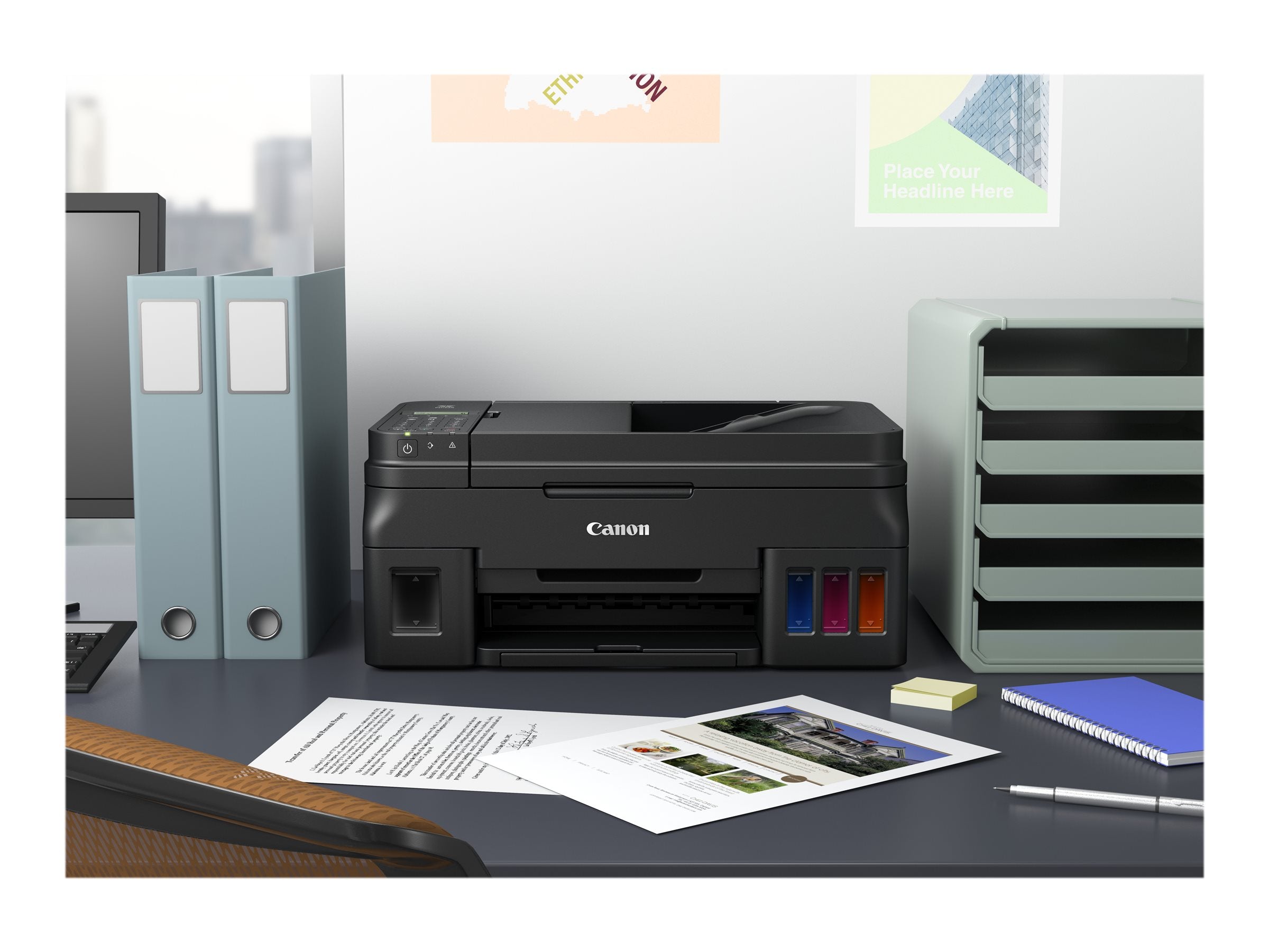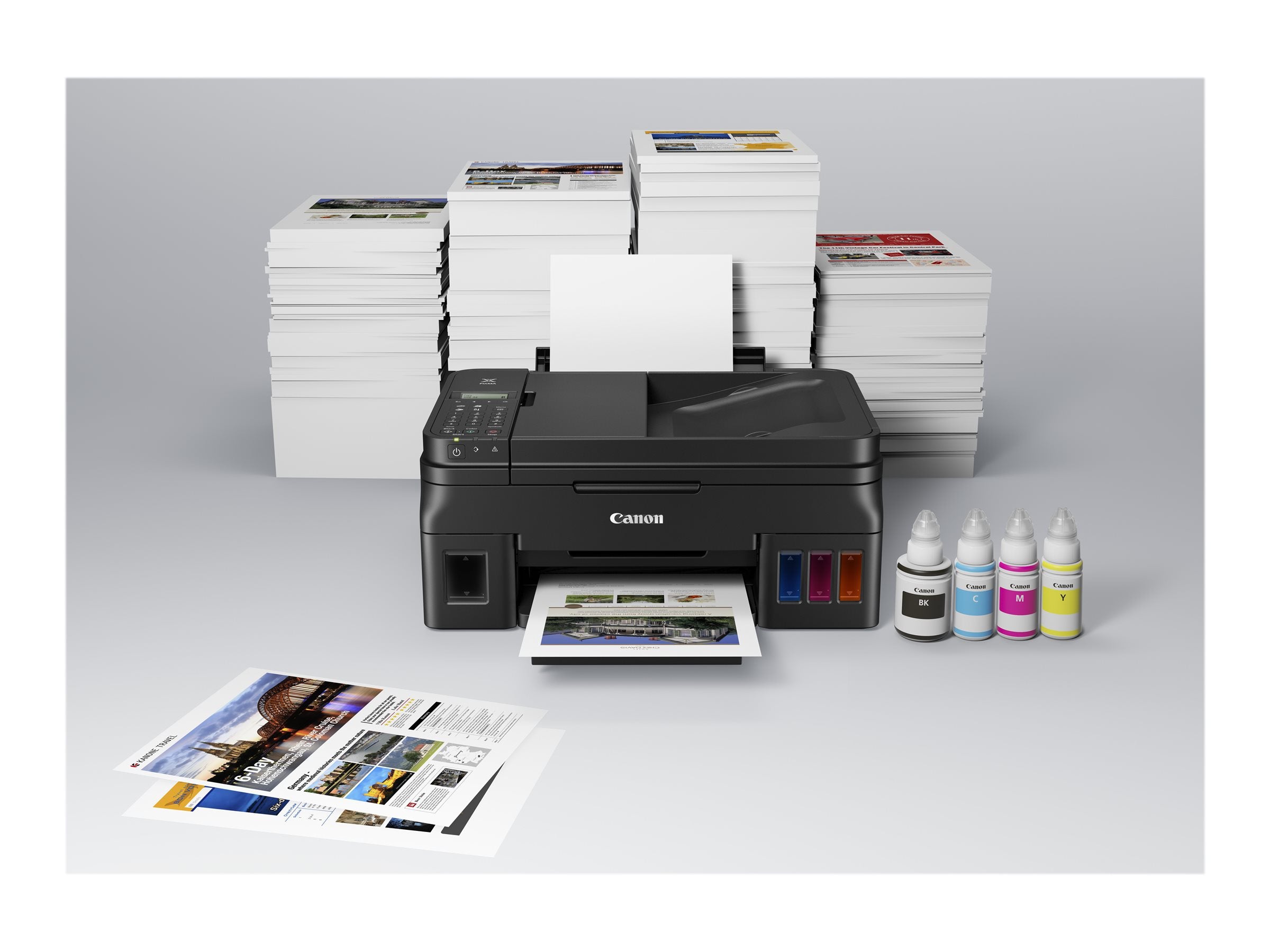 Canon PIXMA G4510 - Imprimante multifonctions - couleur - jet d'encre - rechargeable - A4 (210 x 297 mm), Legal (216 x 356 mm) (original) - Legal (support) - jusqu'à 8.8 ipm (impression) - 100 feuilles - 33.6 Kbits/s - USB 2.0, Wi-Fi(n)Multifonction 4-en-1 Wi-Fi performant intégrant une connectivité à votre smartphone ou tablette et au cloud, un chargeur automatique de documents 20 feuilles et un rendement de page élevé pour réaliser des impressions à faible coût.