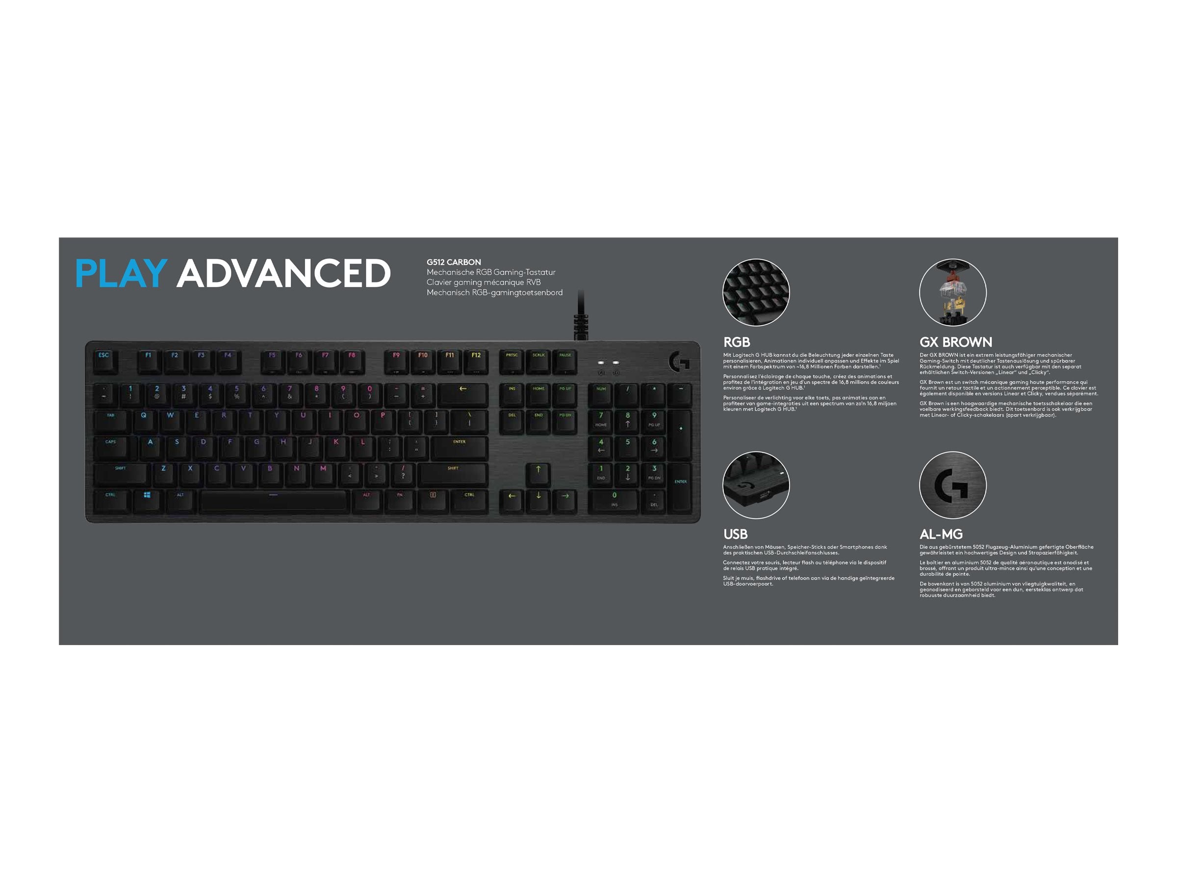 LOGITECH G512 Carbon Lightsync RGB Mechanical Gaming Keyboard with GX Brown switches Carbon FRA Central