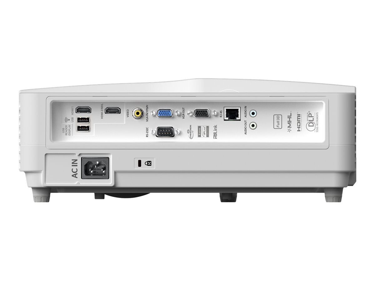Optoma W340UST - Projecteur DLP - 3D - 4000 lumens - WXGA (1280 x 800) - 16:10 - 720p - objectif fixe à ultra courte focale - LANProjetez du contenu lumineux et à grande échelle grâce au projecteur W340UST. Idéal pour les salles de réunion et les salles de classe, ce projecteur a été conçu pour être utilisé à n'importe quel moment de la journée.