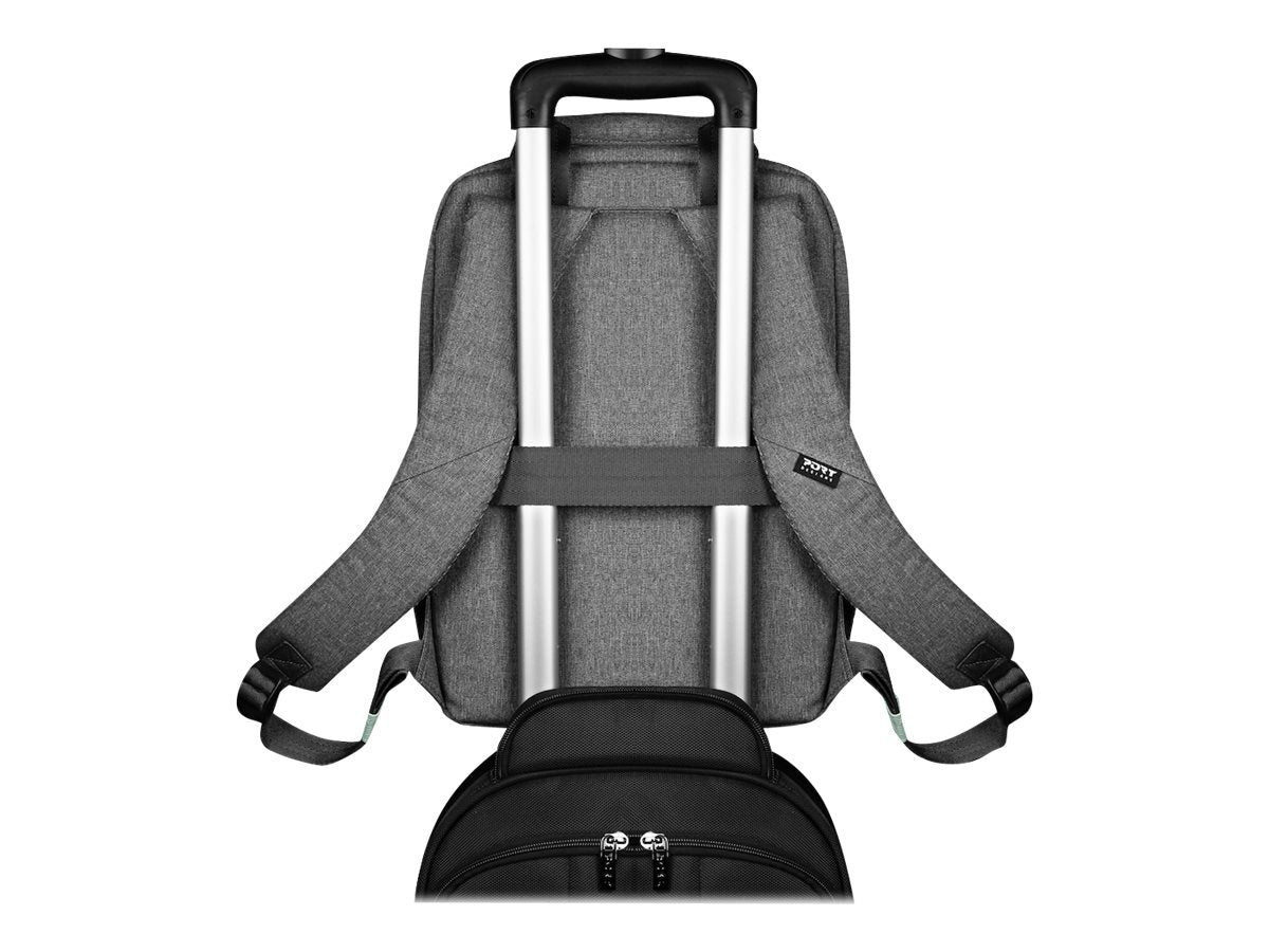 PORT Designs Yosemite Eco-Trendy - Sac à dos pour ordinateur portable - 13" / 14" - grisEco et beau! Le sac à dos Yosemite pour ordinateur portable 13/14" de PORT Designs, fabriqué à partir de 58% de matériaux recyclés (r-PET et PET) et fermetures sans nickel, est une rare combinaison d'éco-conception et de design élégant. Transportez votre ordinateur portable en toute sécurité grâce à son compartiment rembourré dédié et à sa structure entièrement renforcée. Emportez tous vos autres effets personnels dans sa grande poche frontale à accès rapide, son compartiment principal pour les documents et son organiseur interne pour les stylos et les accessoires. La mobilité devient à la portée de tous grâce à sa conception compacte et légère, à ses confortables sangles d'épaule et poignées de transport et à sa sangle arrière de trolley pour poignée de valise. De plus, gardez vos affaires au sec grâce à sa housse de pluie munie de bandes réfléchissantes fabriquées à partir de 90% de matériaux recyclés.