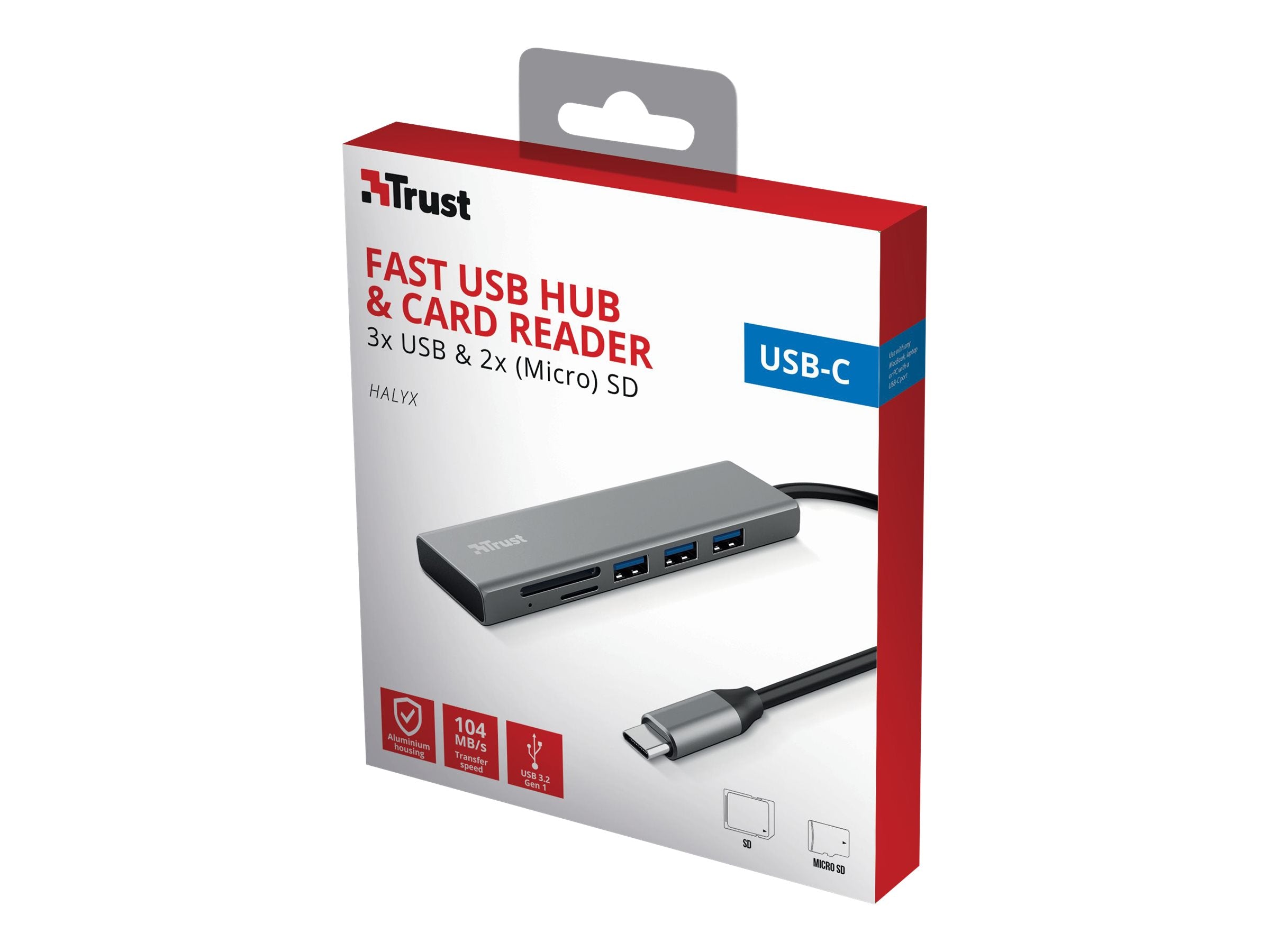 TRUST Hub USB-C HALYX 5 ports 3 USB 1 SD et 1 micro-SD