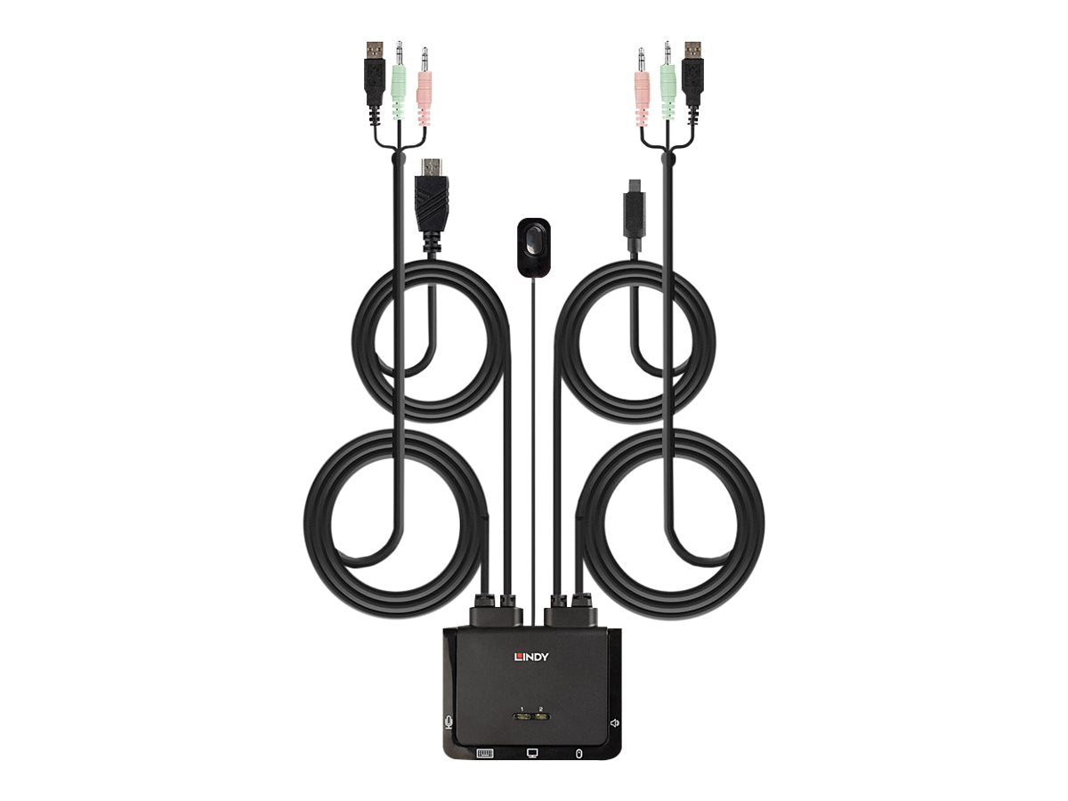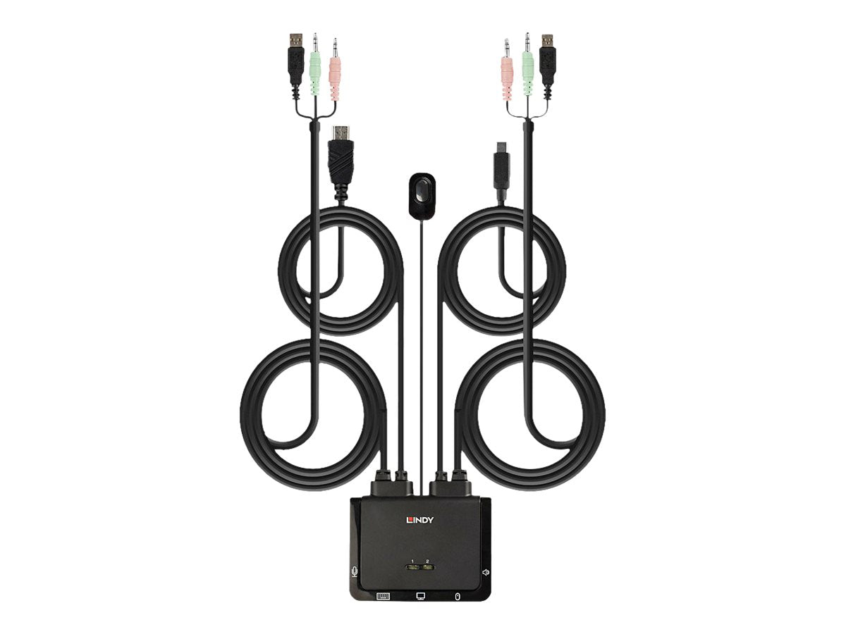 - LINDY 2 Port HDMI 18G USB Type C USB 2.0 & Audio Cable KVM Switch