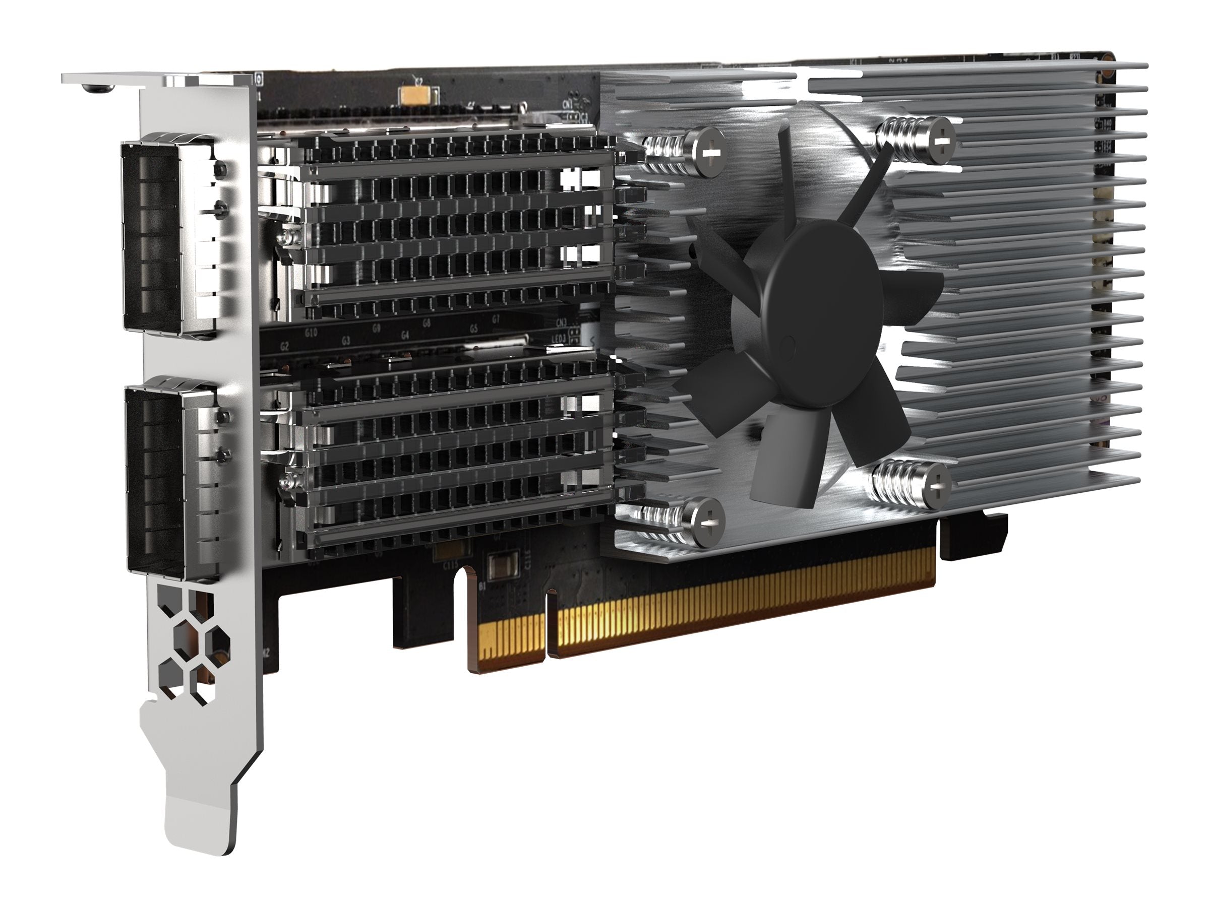 - QNAP Dual-port QSFP28 100GbE network expansion card low-profile form f