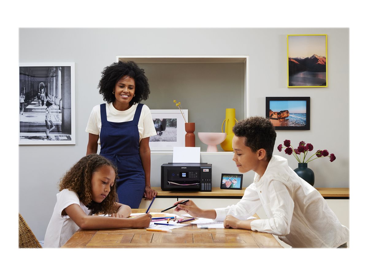 Epson EcoTank ET-2850 - Imprimante multifonctions - couleur - jet d'encre - A4 (support) - jusqu'à 10.5 ppm (impression) - 100 feuilles - Wi-Fi, USB - noirÉconomisez jusqu'à 90 % sur les coûts de l'encre avec les imprimantes multifonctions Epson EcoTank sans cartouches. Fournie avec des bouteilles d'encre haute capacité, ses réservoirs d'encre intégrés sont faciles à remplir grâce aux bouteilles d'encre spécialement conçues. Sans aucune cartouche à remplacer et dotée de différentes fonctionnalités de connectivité ainsi que de l'impression recto verso, cette imprimante multifonction est idéale pour les personnes qui recherchent des impressions de haute qualité et un coût par page très bas.