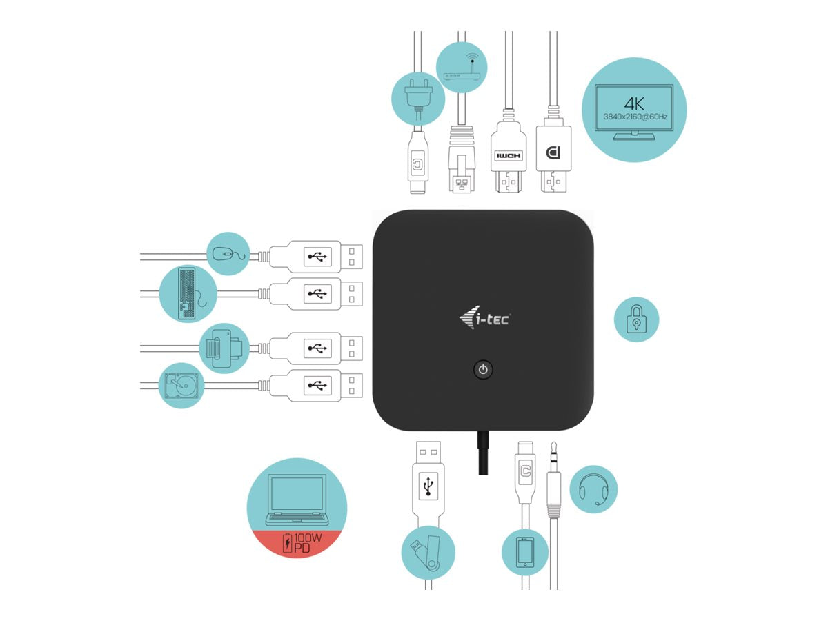 i-Tec - Station d'accueil - USB-C 3.1 Gen 2 / Thunderbolt 3 - DP, HDMI - 1GbE - 112 Watt - avec chargeur universel i-Tec 112 W - Europe