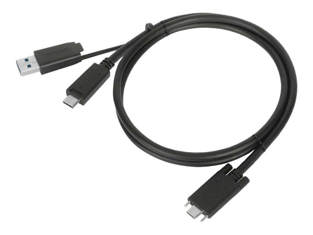 Targus - Kit de câble USB - vis moletées - noir - pour Targus DV4K, Universal, Universal DV4K, USB-C Universal QUAD 4K, USB-C Universal QUAD HDLa connexion à une station d'accueil Targus et le transfert de données deviennent un jeu d'enfant grâce à ce câble USB-C mâle avec vis vers USB-C mâle avec attache USB-A de 1M. Parfait pour les environnements mixtes, le câble USB-C dispose d'un connecteur USB-A, ce qui le rend compatible avec les appareils USB-A et USB-C. Compact et léger, il se glisse facilement dans votre sac à dos ou votre mallette.