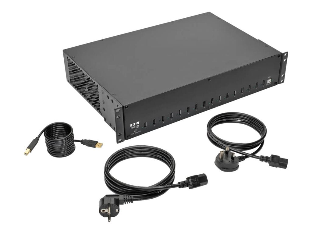 Eaton Tripp Lite Series 16-Port USB Charging Station with Syncing, 230V, 5V 40A (200W) USB Charger Output, 2U Rack-Mount - Station de charge - 200 Watt - 40 A - 16 connecteurs de sortie (16 x 4 pin USB Type A) - noir - Royaume-Uni