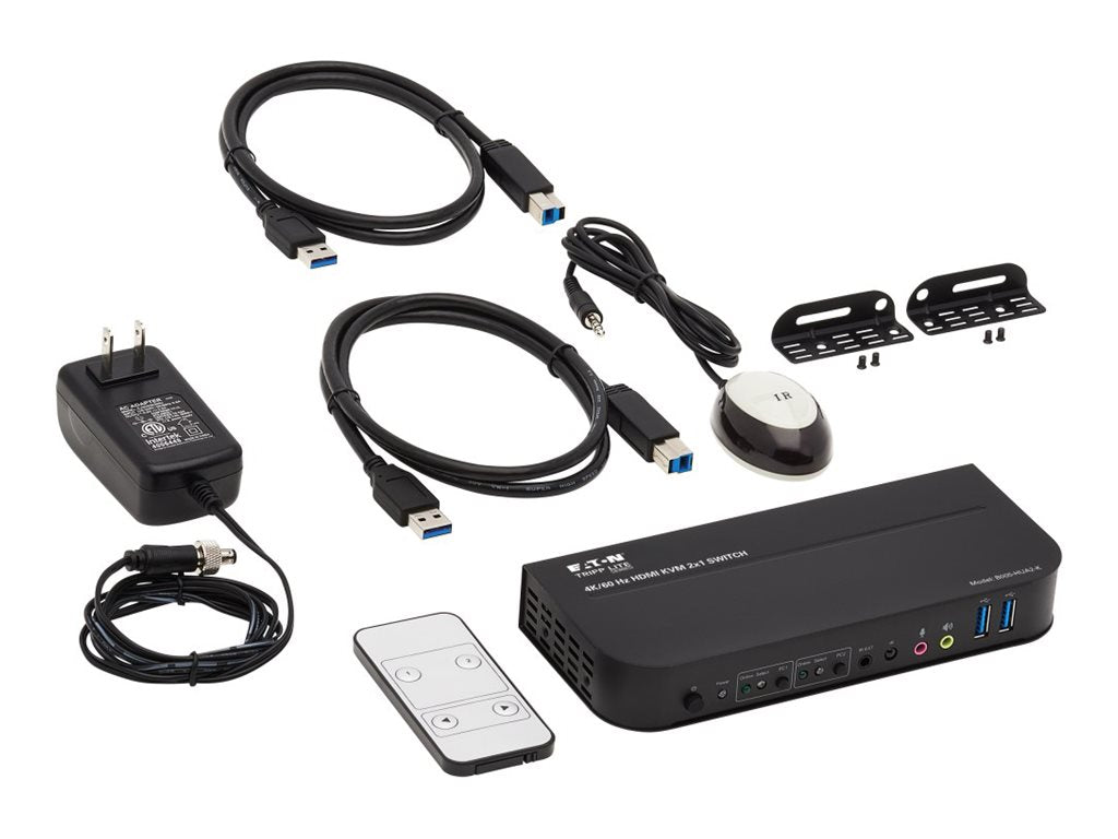 Eaton Tripp Lite series HDMI KVM, 2-Port 4K 60Hz 4:4:4, HDR, HDCP 2.2 Support, IR Remote and USB Cables - Commutateur écran-clavier-souris/audio/USB - 2 x KVM / audio / USB - 1 utilisateur local - de bureau