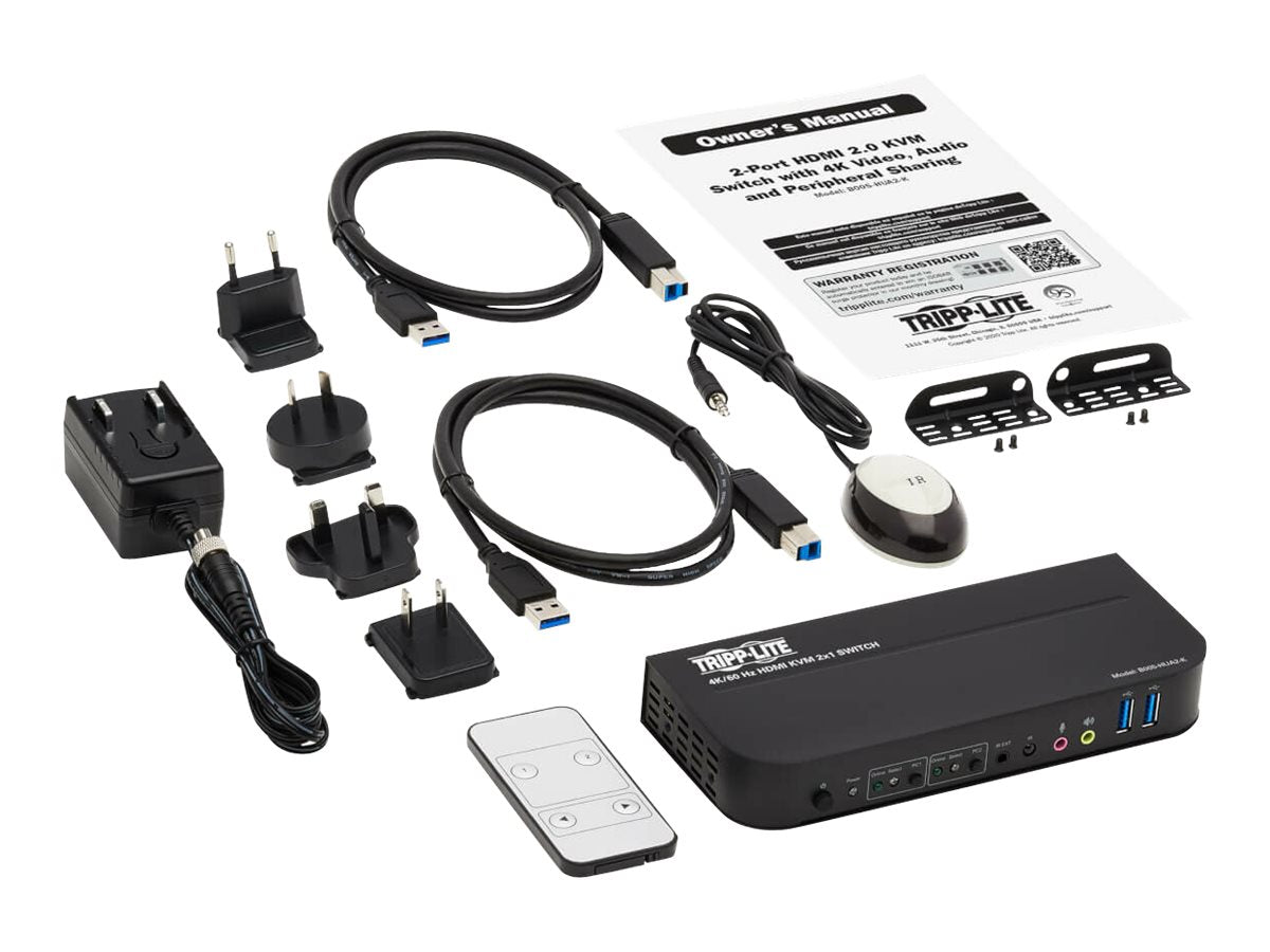 • EATON TRIPPLITE 2-Port HDMI/USB KVM Switch 4K 60Hz HDR HDCP 2.2 IR USB Sharing USB 3.0 Cables