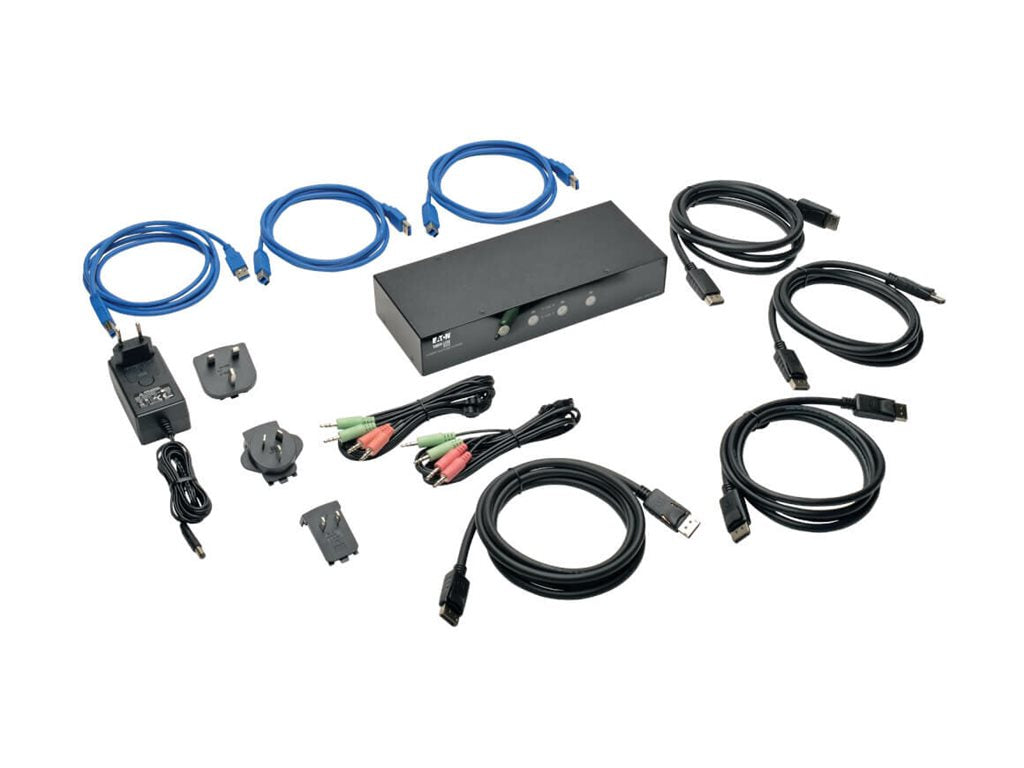 - EATON TRIPPLITE 4-Port DisplayPort KVM Switch with Audio Cables and US