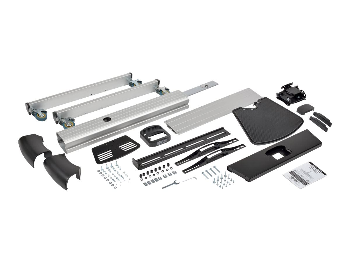 Eaton Tripp Lite Series Rolling TV/Monitor Cart - for Flat/Curved 32" to 70" TVs and Monitors - Chariot - pour Écran LCD - aluminium, acier - noir, argent - Taille d'écran : 32"-70" - posé sur le solAméliorez votre expérience visuelle avec le chariot roulant pour téléviseur/moniteur de la série Tripp Lite d'Eaton. Conçu pour accueillir des téléviseurs et des moniteurs plats ou incurvés de 32 à 70 pouces, ce chariot offre une grande souplesse d'utilisation. Qu'il s'agisse de présentations professionnelles, d'activités éducatives ou d'installations de divertissement, ses fonctions de réglage de la hauteur et de rotation permettent d'obtenir l'angle de vision parfait, que ce soit en orientation paysage ou portrait. Construit en aluminium et en acier robustes, il promet durabilité et stabilité, supportant jusqu'à 68,04 kg. La mobilité est un jeu d'enfant grâce à ses quatre roulettes pivotantes, ce qui en fait une solution idéale pour les espaces dynamiques et polyvalents. L'inclusion de deux étagères et d'une étagère pour caméra améliore encore sa fonctionnalité, offrant de l'espace pour les accessoires et les outils de visioconférence. Avec un ensemble complet de matériel d'installation inclus, il n'a jamais été aussi facile de mettre en place votre poste de visualisation idéal.