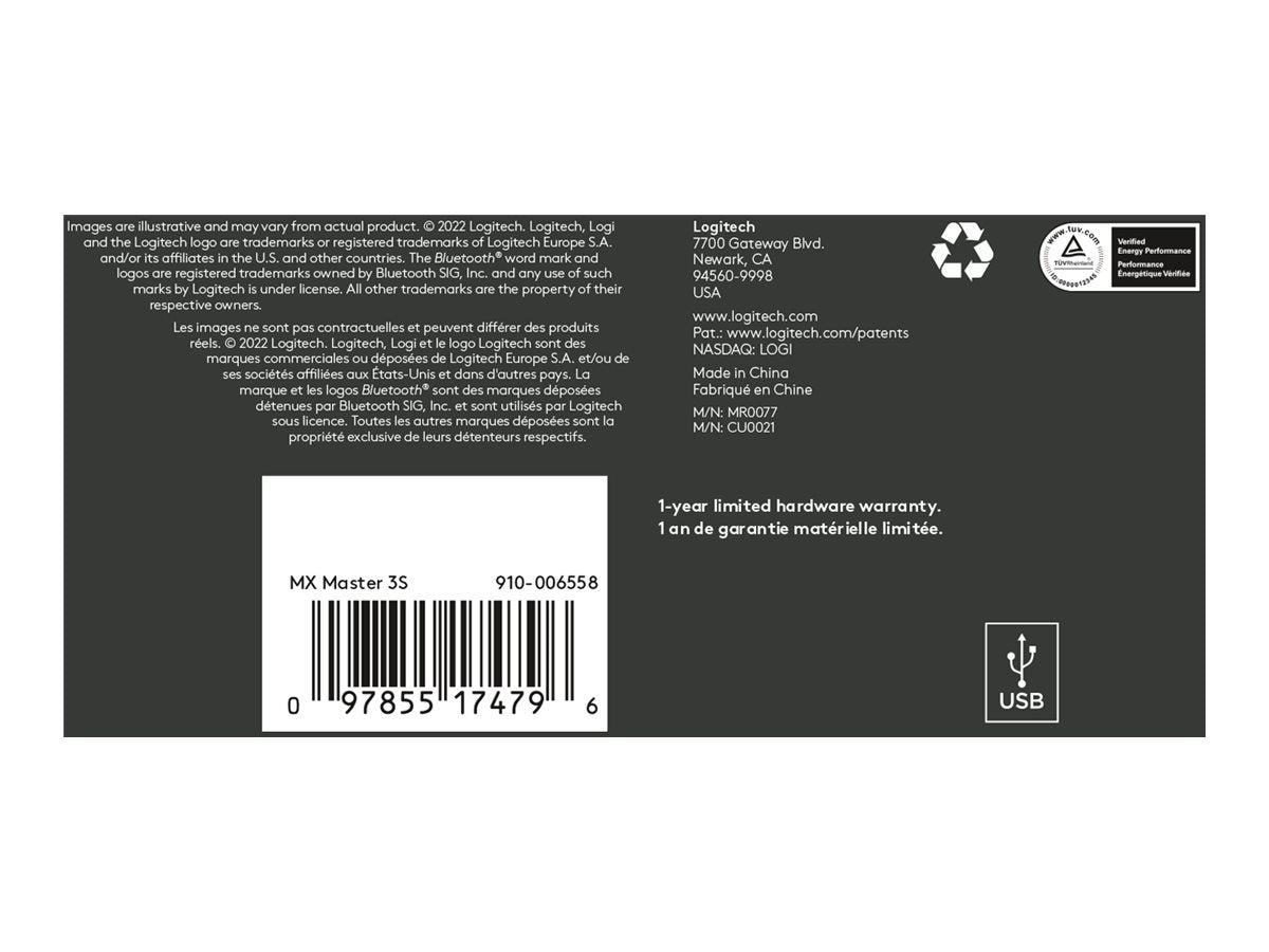 LOGITECH Master Series MX Master 3S Mouse ergonomic optical 7 buttons wireless Bluetooth 2.4 GHz Bolt USB receiver