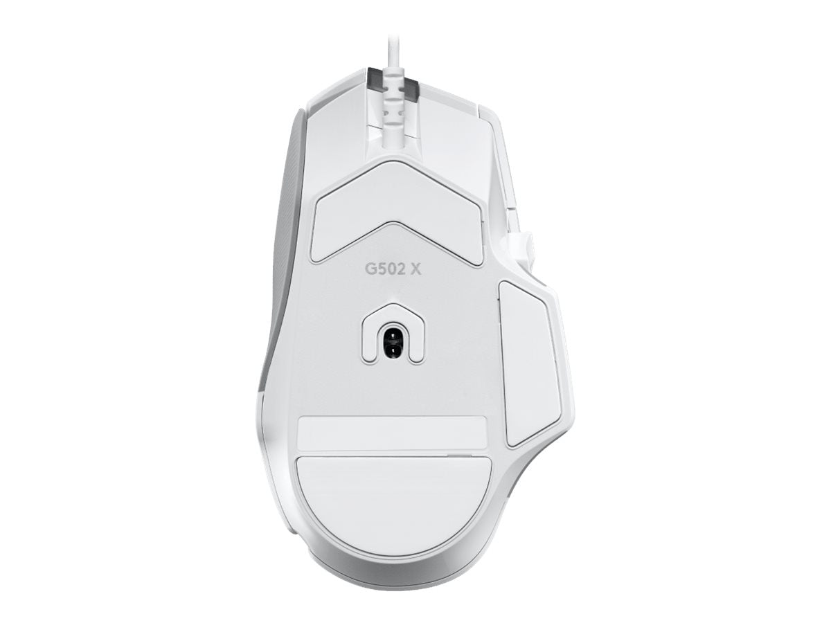 Logitech G G502 X - Souris - optique - filaire - USB - blancLa souris G502 X est la dernière nouveauté de la gamme légendaire G502. Grâce à son nouveau design, elle ne pèse plus que 89 grammes. Dotée de nos tout premiers switchs optiques-mécaniques hybrides LIGHTFORCE et du capteur à l'échelle du sous-micron HERO 25K.
