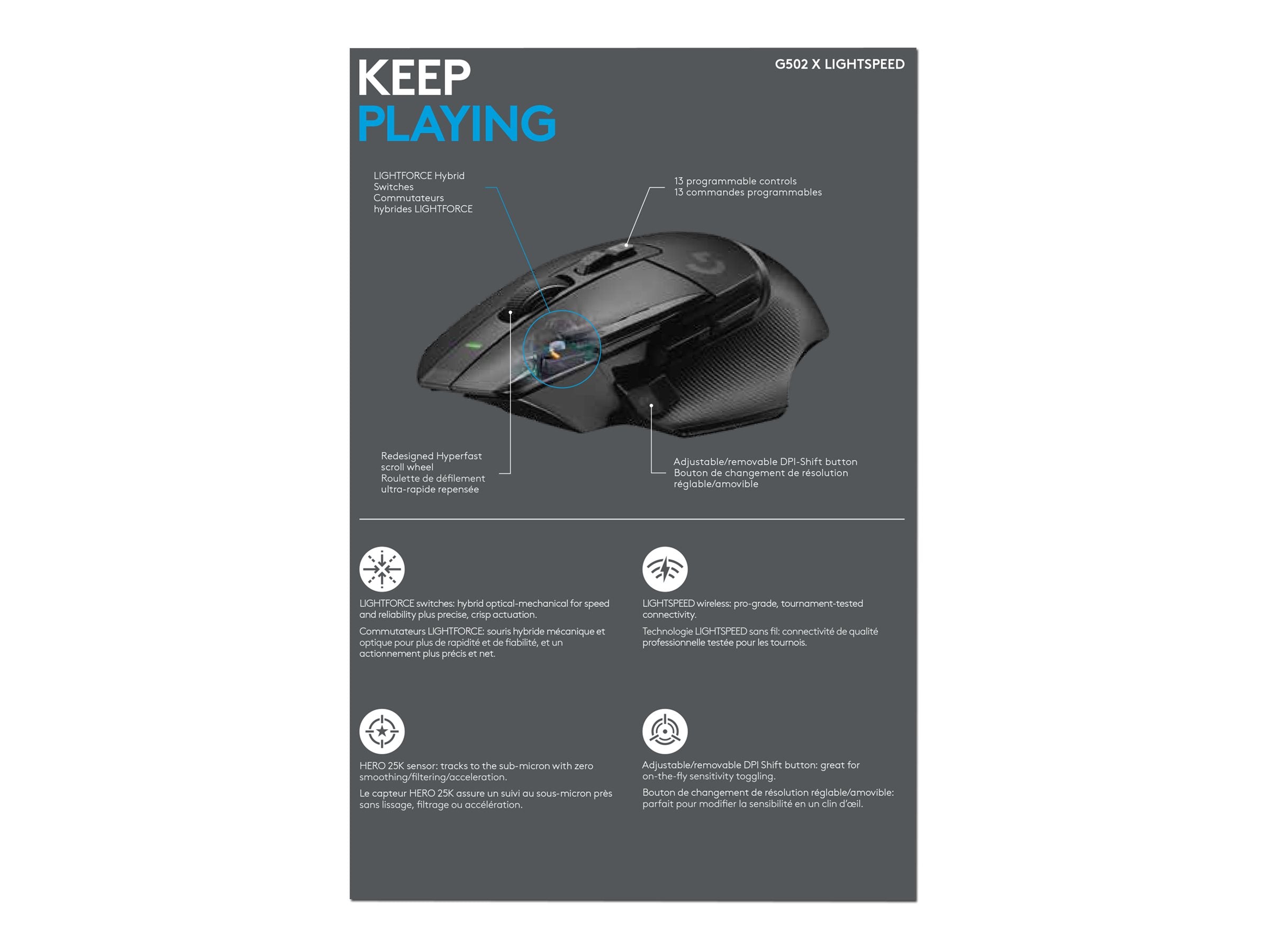 LOGITECH G G502 X LIGHTSPEED Mouse optical 8 buttons wireless 2.4 GHz USB LOGITECH LIGHTSPEED receiver black