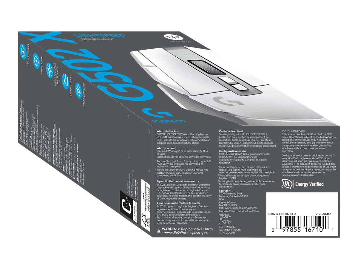 LOGITECH G G502 X LIGHTSPEED Mouse optical 8 buttons wireless 2.4 GHz USB LOGITECH LIGHTSPEED receiver white